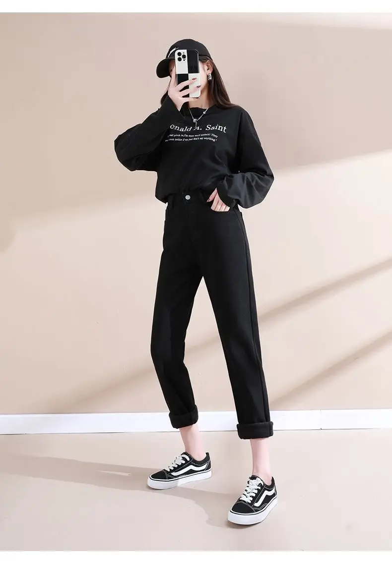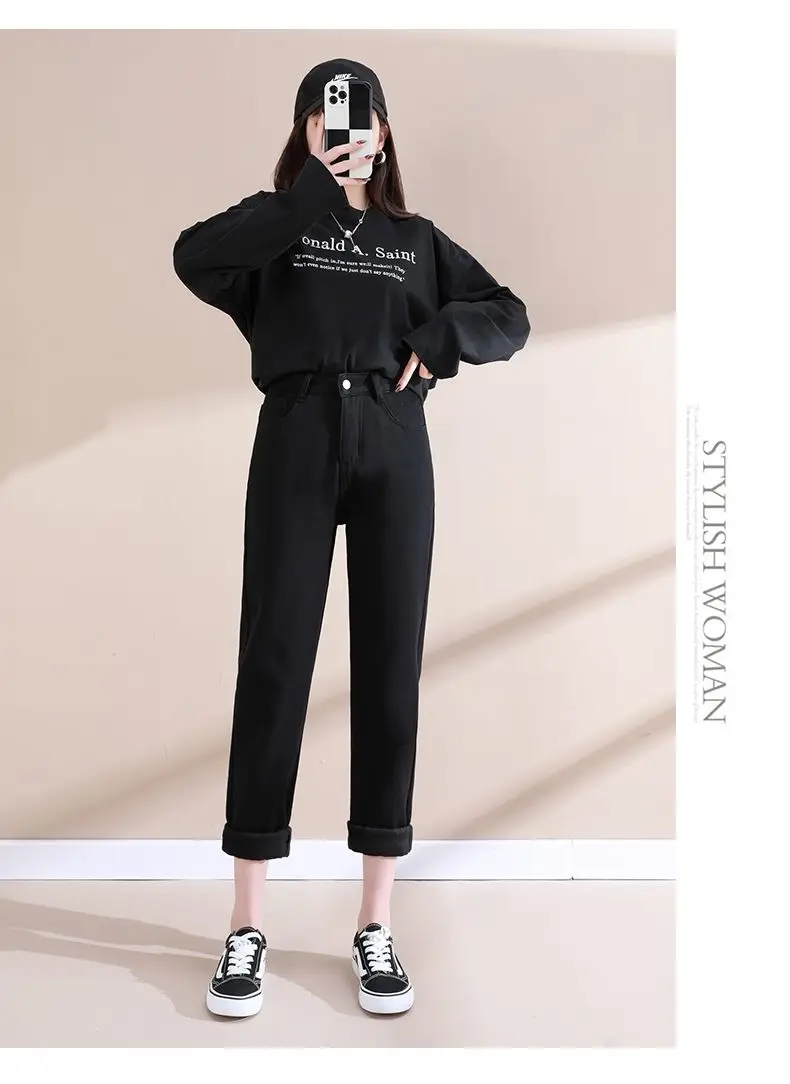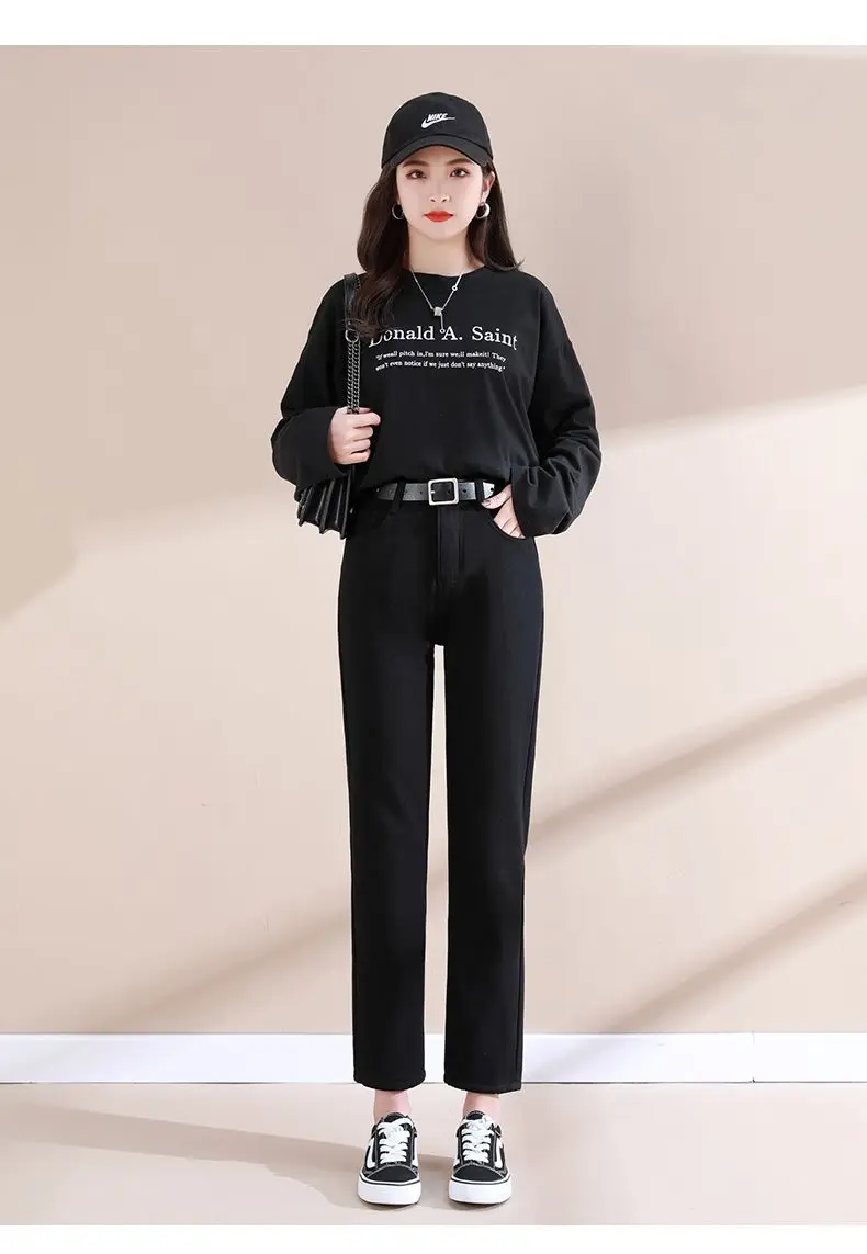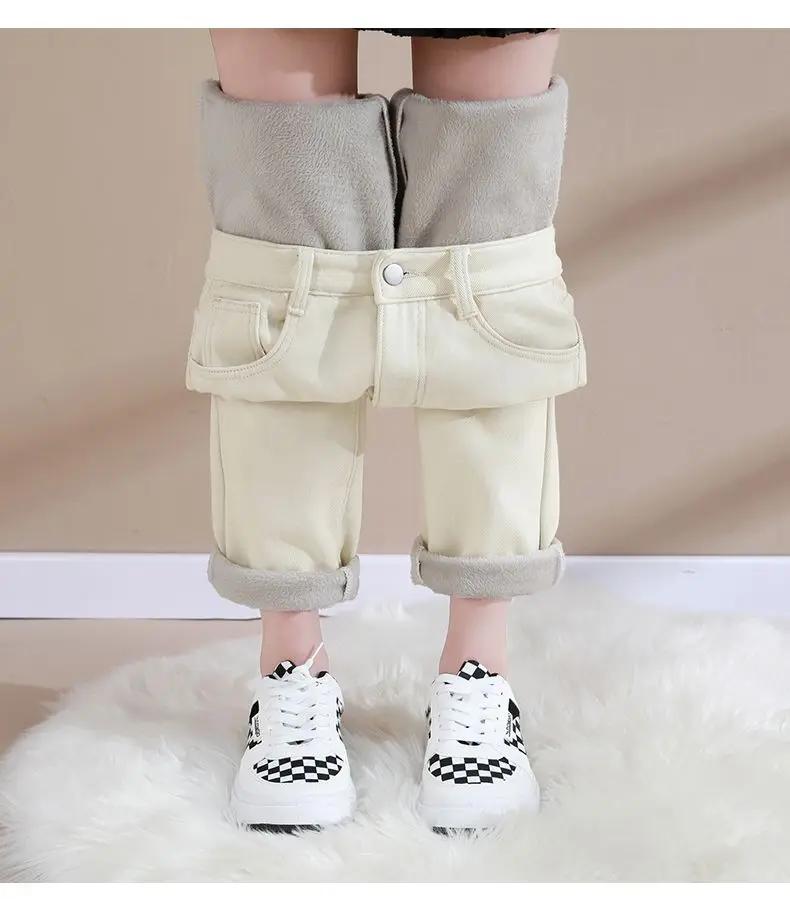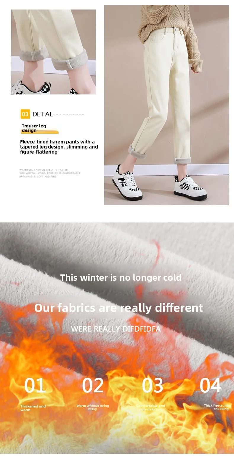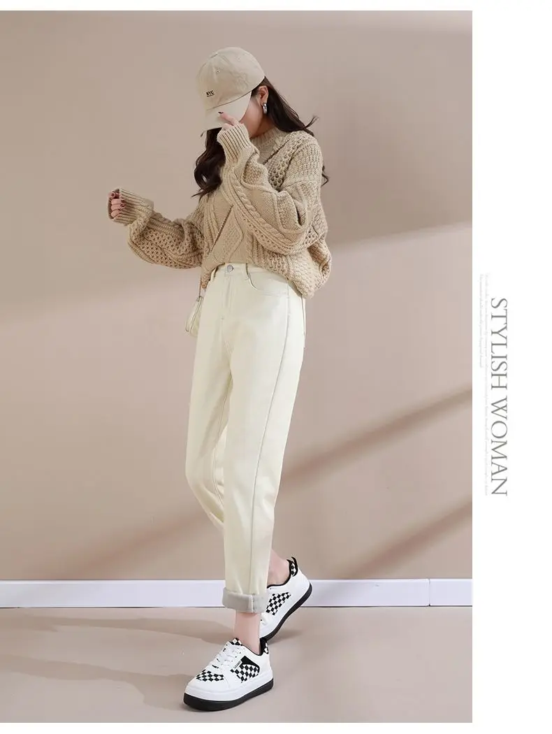 Autumn Winter Thick Velvet Women High Waist Y2K Jeans Simple Fleece Warm Stretch Ladies Casual Loose