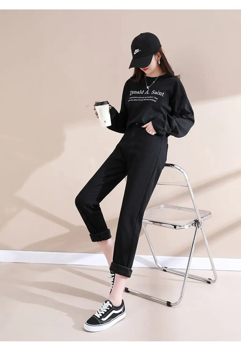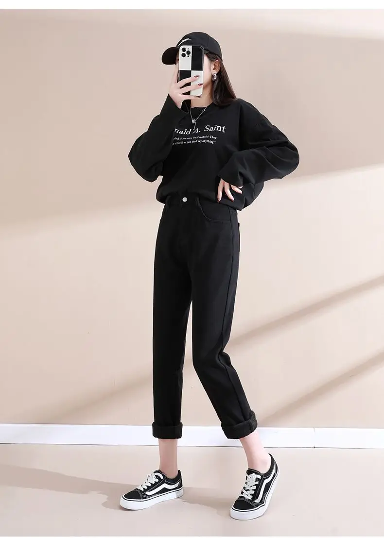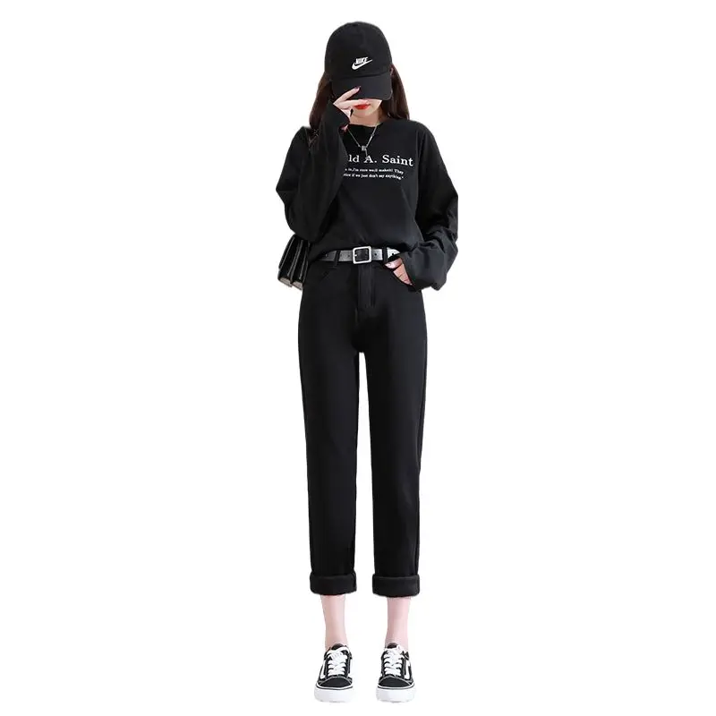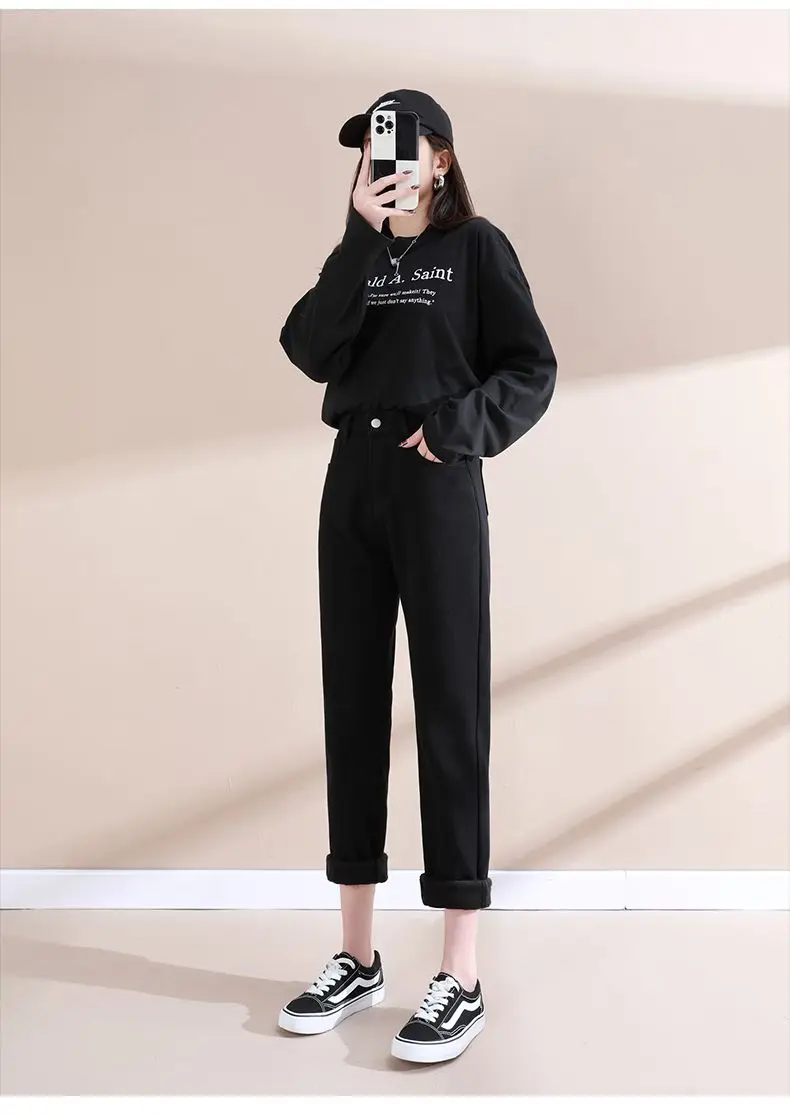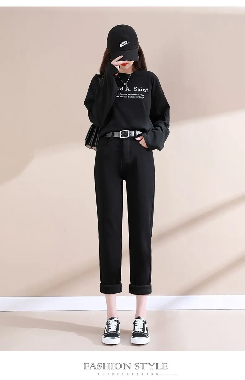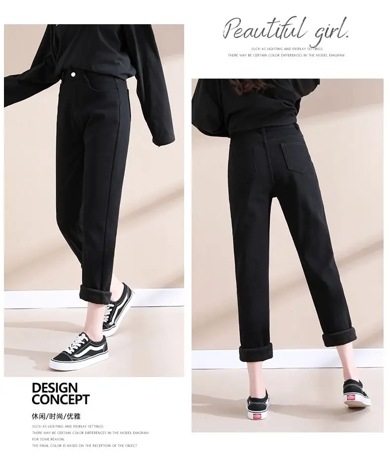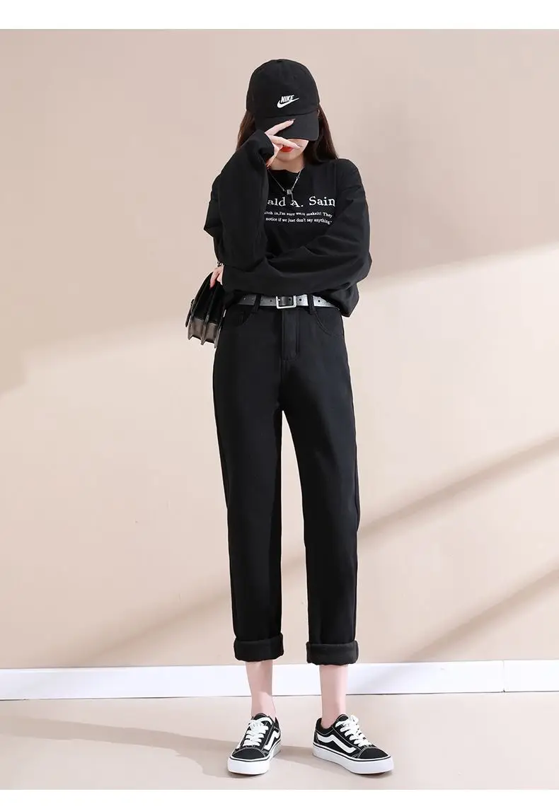 Autumn Winter Thick Velvet Women High Waist Y2K Jeans Simple Fleece Warm Stretch Ladies Casual Loose