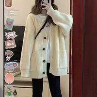 Women's Autumn Winter Thickened Long Sleeve Coat Lamb Fur Simulation Loose Fit Mid-Length Open Cardigan Korean Style Outerwear