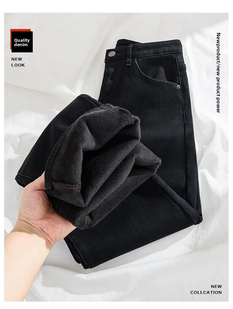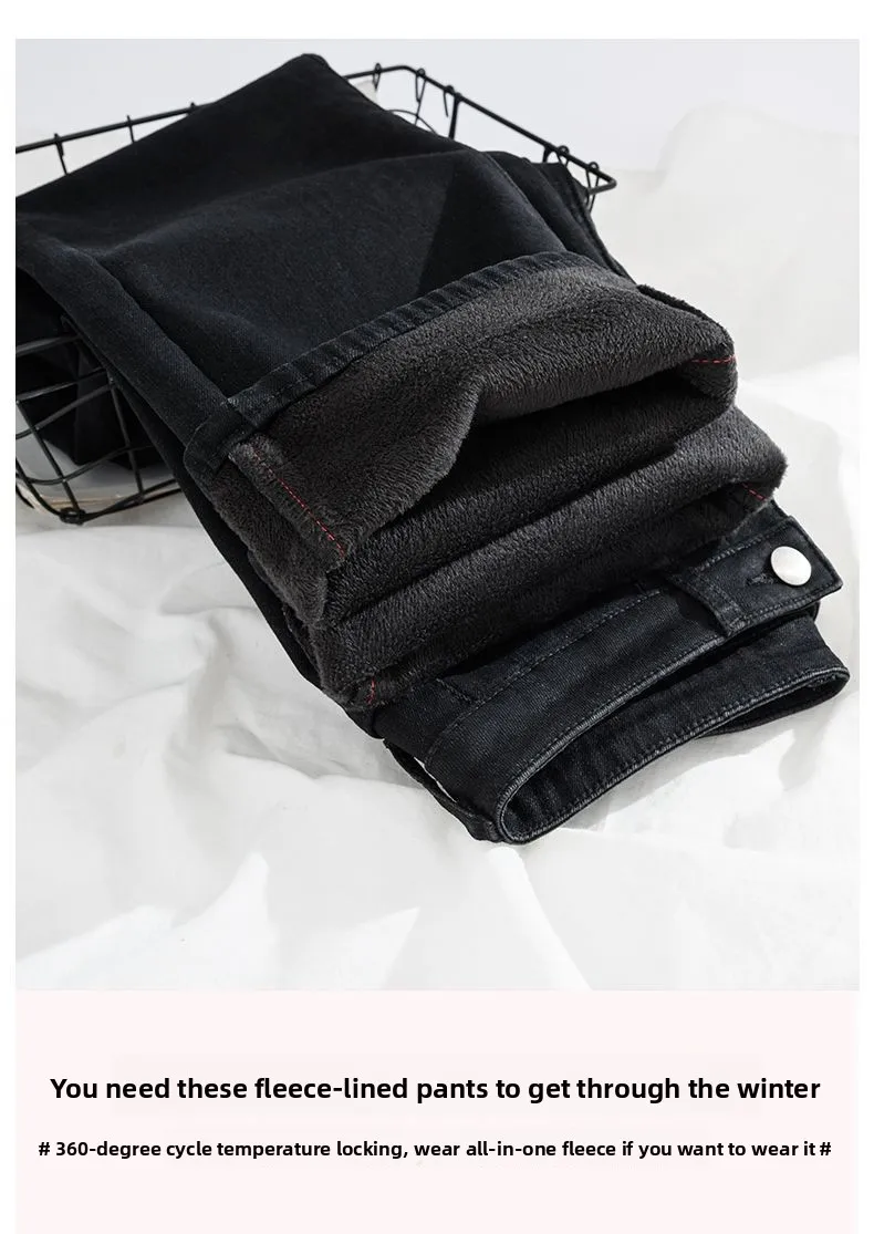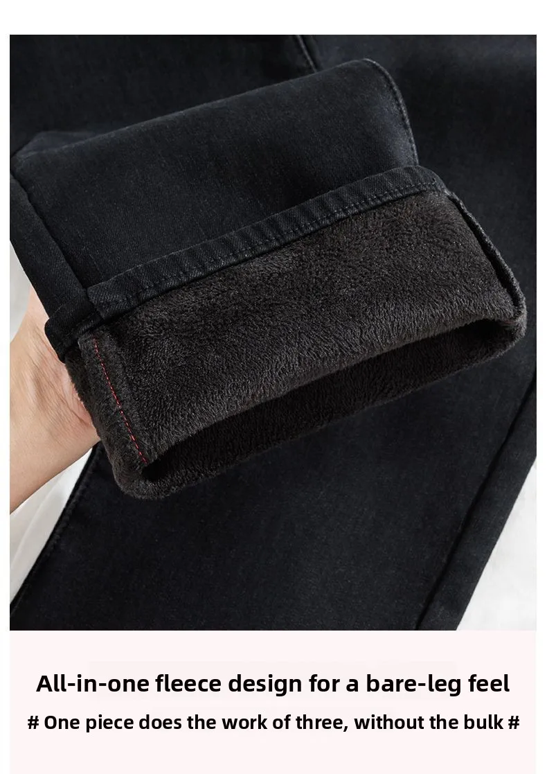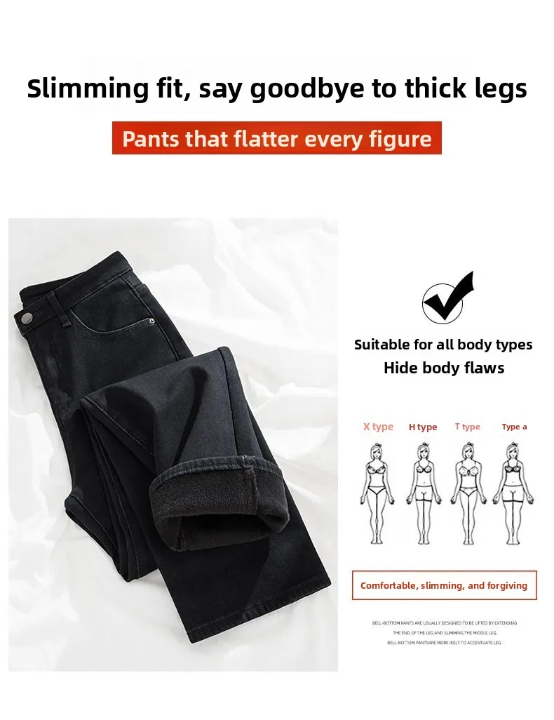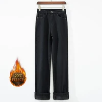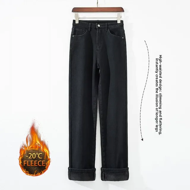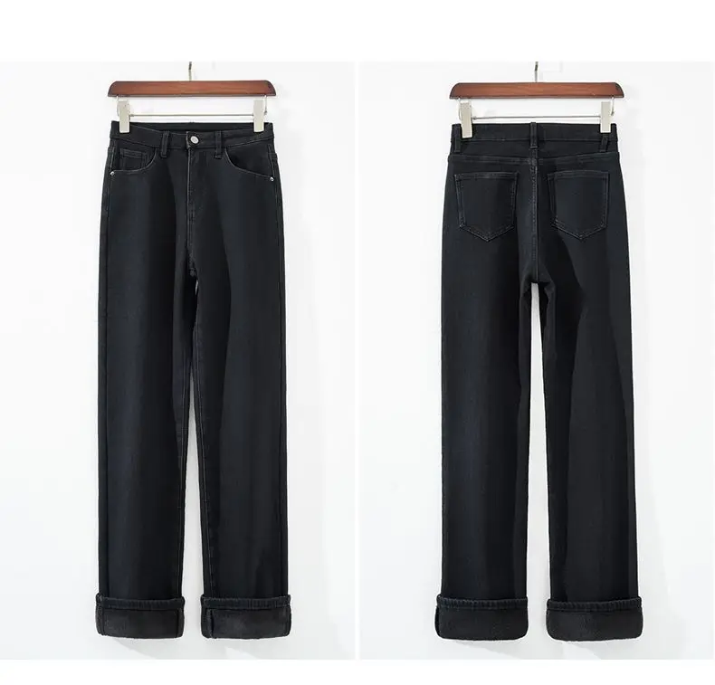 Autumn Winter Women’s Y2K Wide Leg Thicken High Waist Jeans Denim Thermal Fleece Lined Warm Jeans