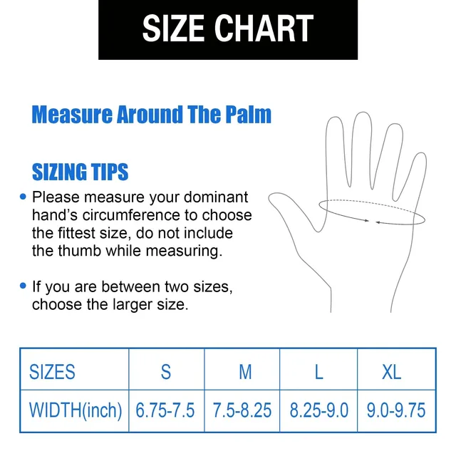 • Size Tip:To ensure the perfect fit, measure around your hand’s palm using the size chart in the product image. If you fall between sizes, we recommend choosing the larger size for enhanced comfort.