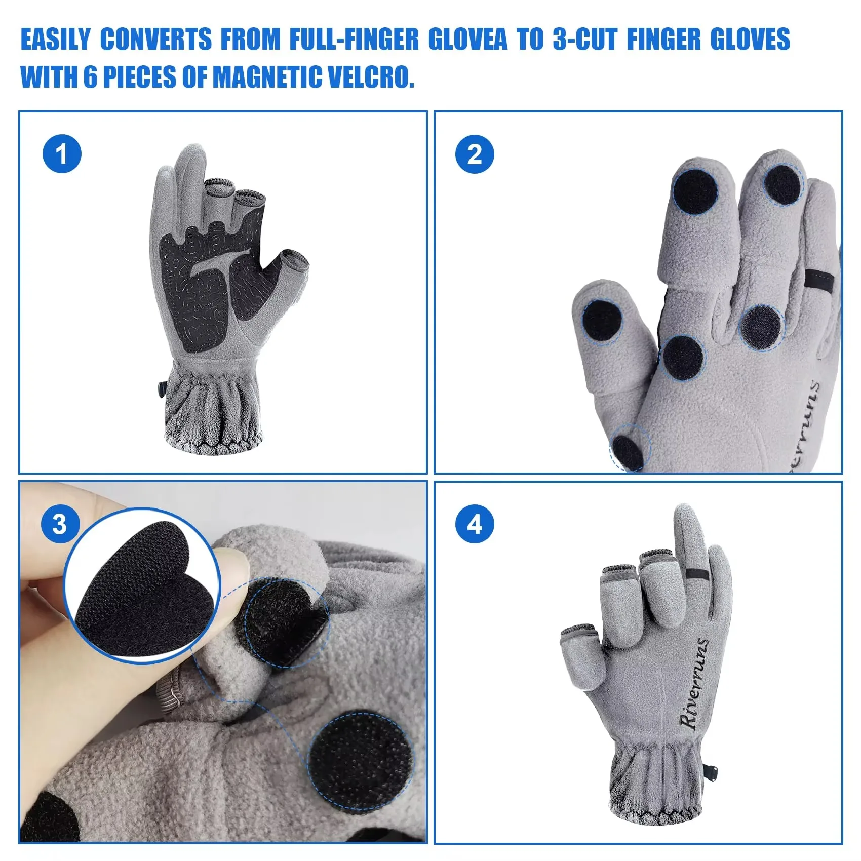 • Convertible Freedom:These fishing gloves boast a convenient flip-top design that easily folds back and secures with a hook and loop closure when not in use. This ingenious feature allows you to switch effortlessly from warm mittens to fingerless gloves, liberating your fingers for tasks like fishing, knot tying, line stripping, running, and photography, all while maintaining peak performance, protection, and dexterity.