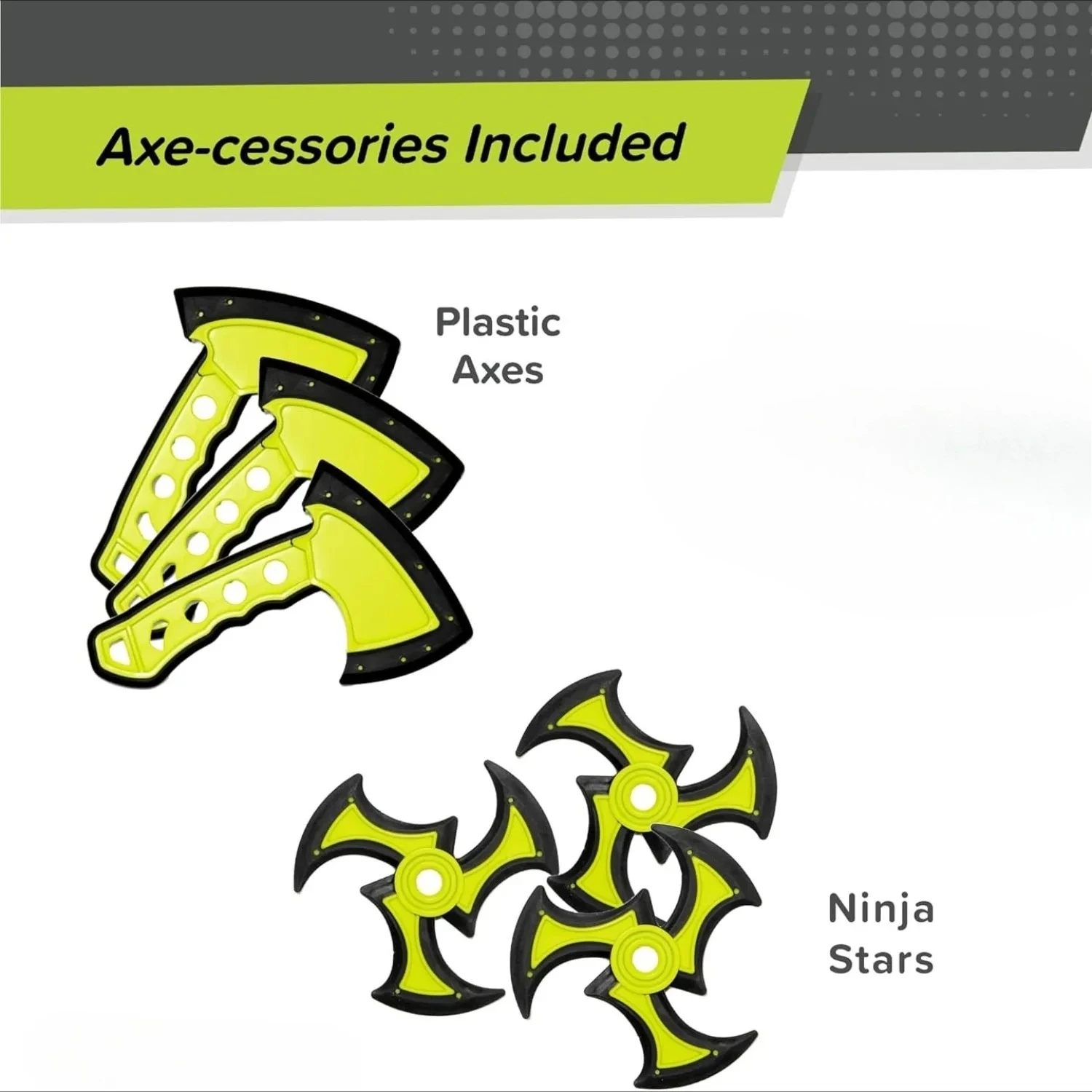 Everything You Need to Start a Fun Game Night: This children’s toy axe throwing set includes 3 plastic toy axes, 3 plastic toy ninja stars, and 3 plastic darts, making family game nights even more exciting. Whether it’s a backyard barbecue or an indoor party, this all-in-one game set ensures the fun never stops.