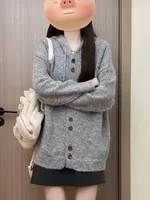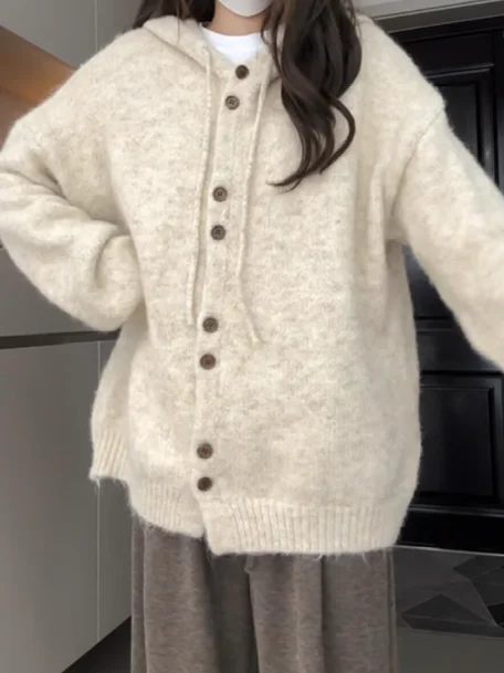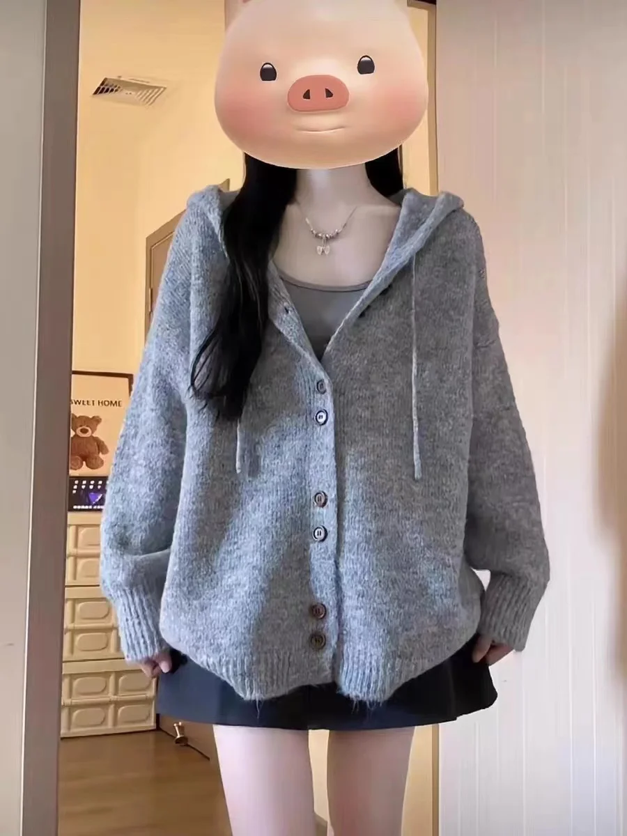 ay Hooded Open Cardigan Sweater Women's Loose Soft Lazy Sle Knitted Top Autumn Winter Faion Korean System Casual Wear