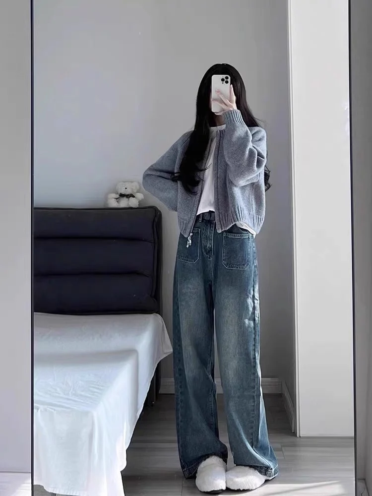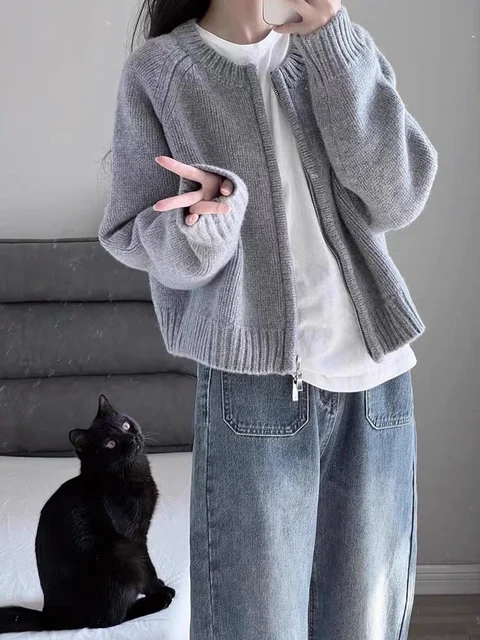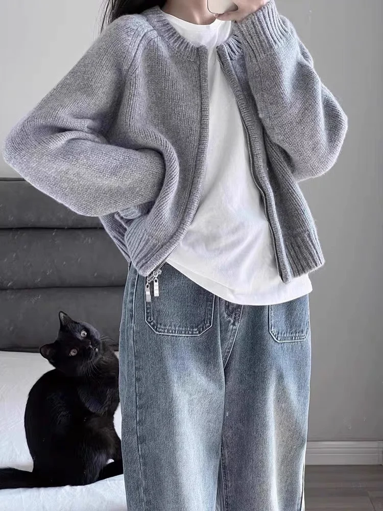 The thickened zipper cardigan adds an extra layer of warmth, making it ideal for the autumn and winter seasons.