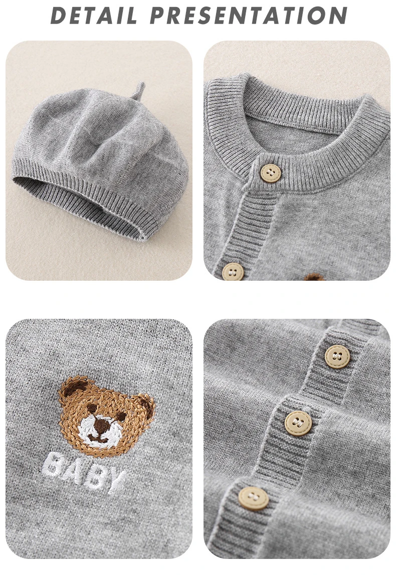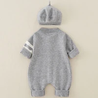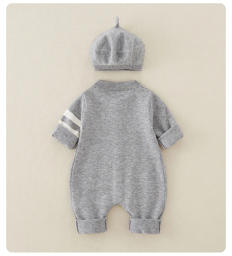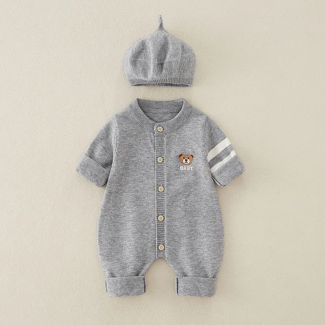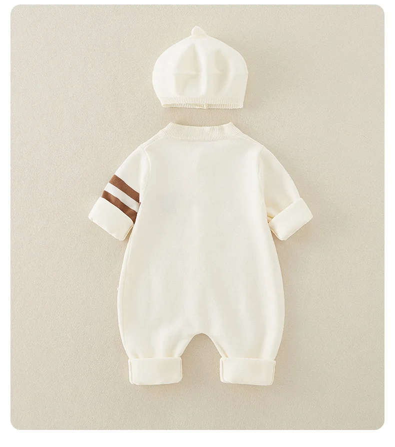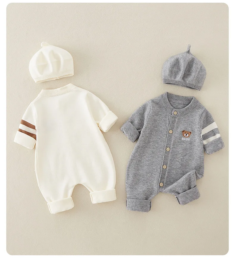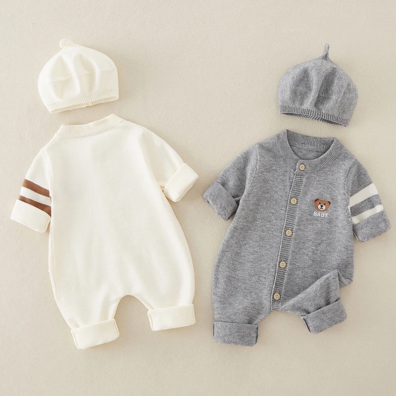 AYNIGIELL Autumn Newborn Baby Jumpsuit Hat 2-piece Set, Korean Version 0-18 Months Newborn Pure Cotton