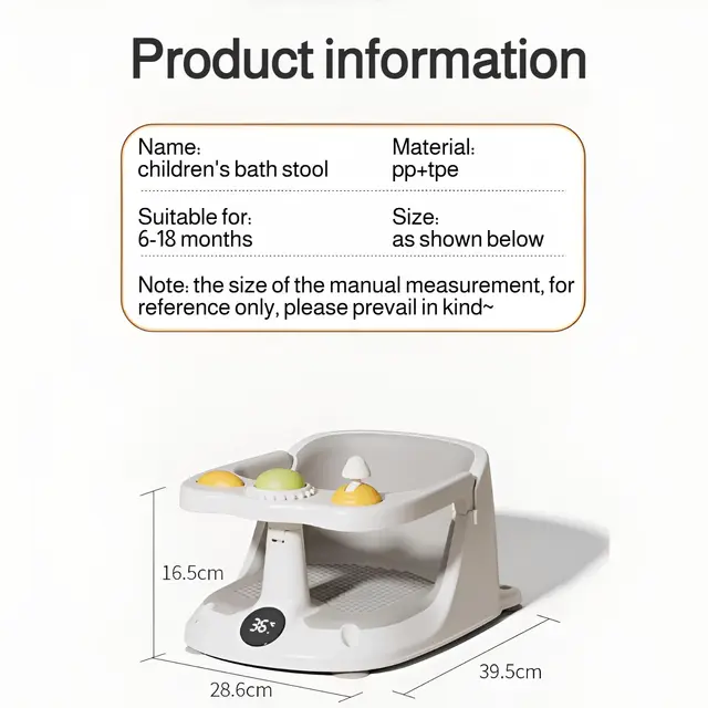 Baby Bath Chair Anti-Slip PVC Bathtub with Secure Suction Toddler Shower 6M+ Multifunctional Bathing Aid for Families