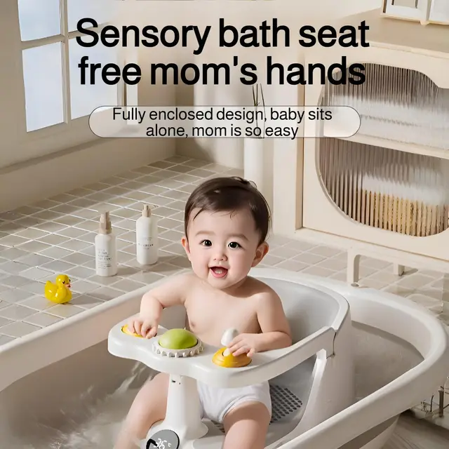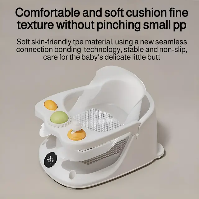 Baby Bath Chair Anti-Slip PVC Bathtub with Secure Suction Toddler Shower 6M+ Multifunctional Bathing