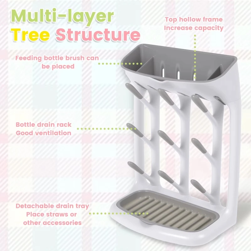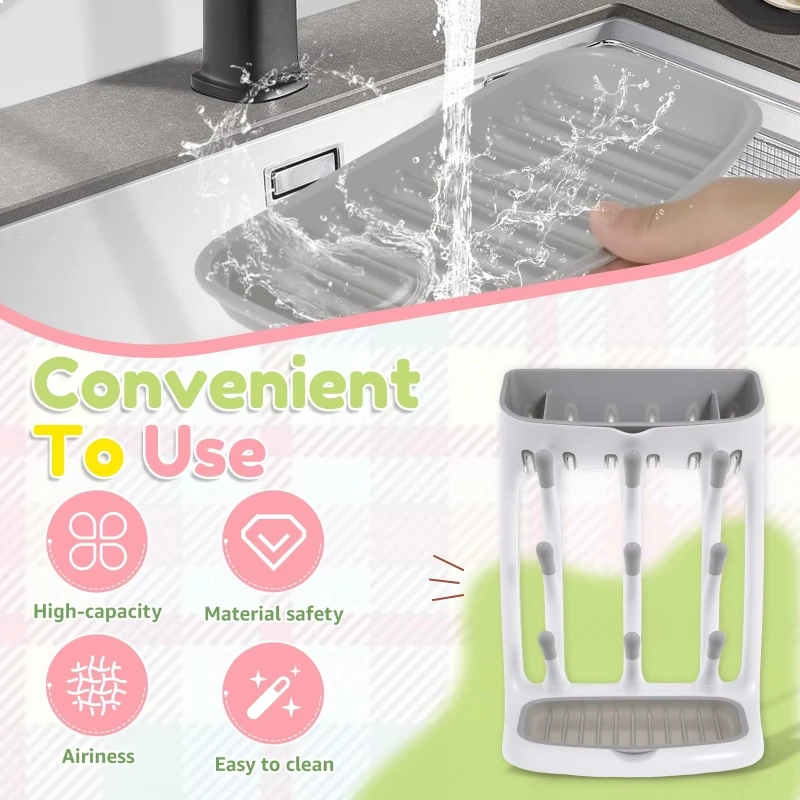 Baby Bottle Drying Rack Space Saving Countertop Holder Detachable Tray Baby Accessories Feeding Bottle