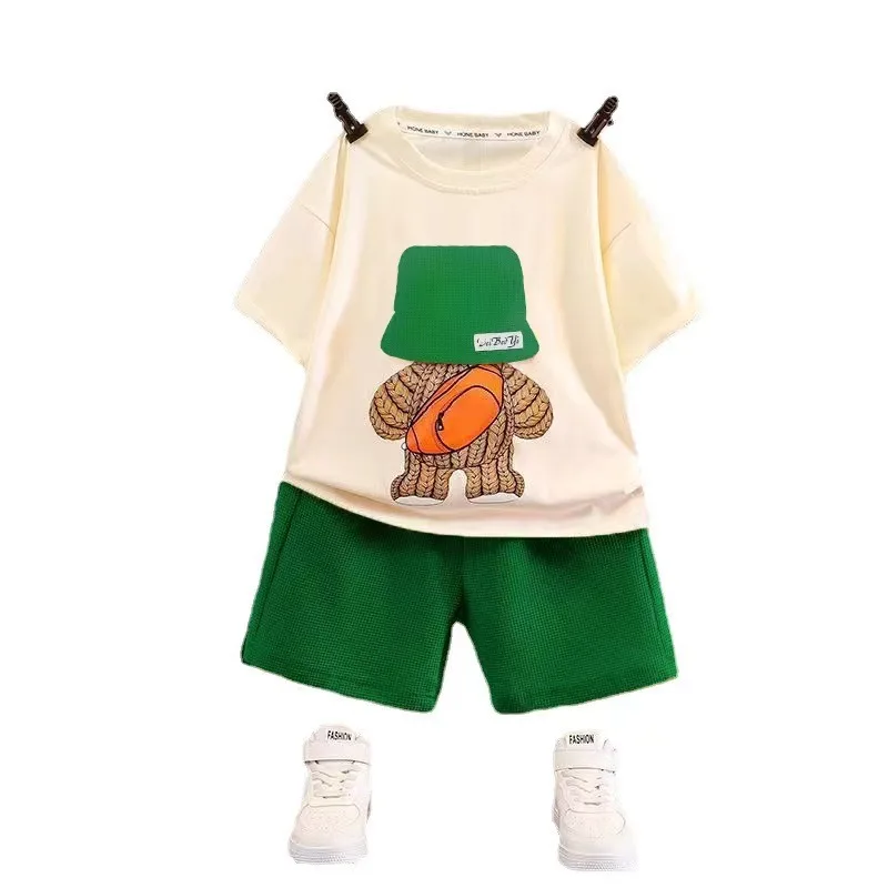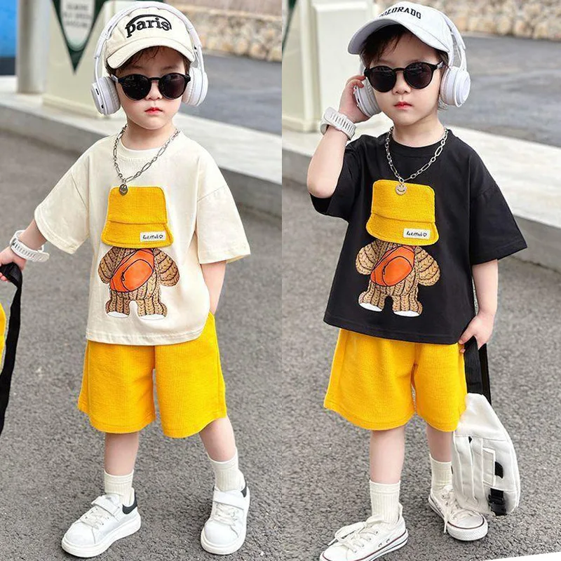 Baby Boy Clothes Summer Korean Cartoon Children's Casual Sets Loose Cooler Cute Fashion Suit Infants Top + Shorts Two Piece Set
