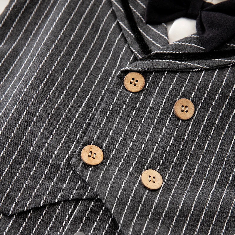 Newborn Gentleman Style Clothes Spring And Autumn Long Sleeved Pure Cotton Jumpsuit British Handsome Baby Boy Wedding Costume