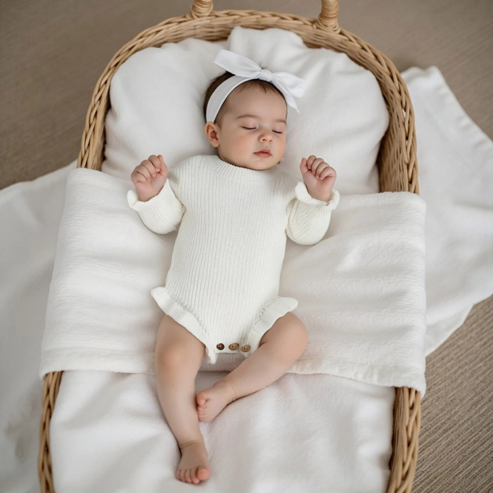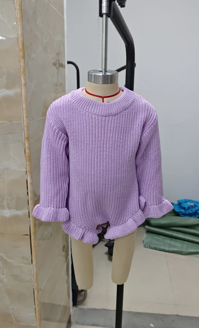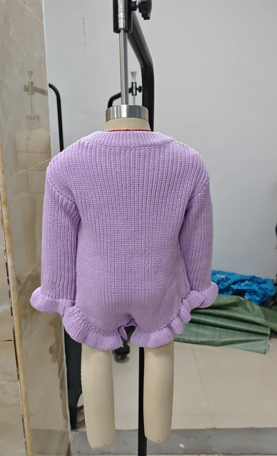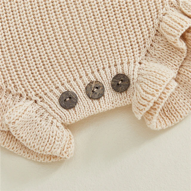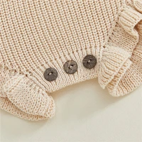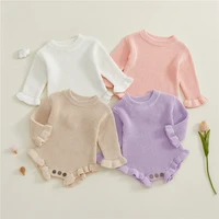 Baby Fall Knit Romper Solid Color Long Sleeve Round Neck Ruffled Sweater Jumpsuit