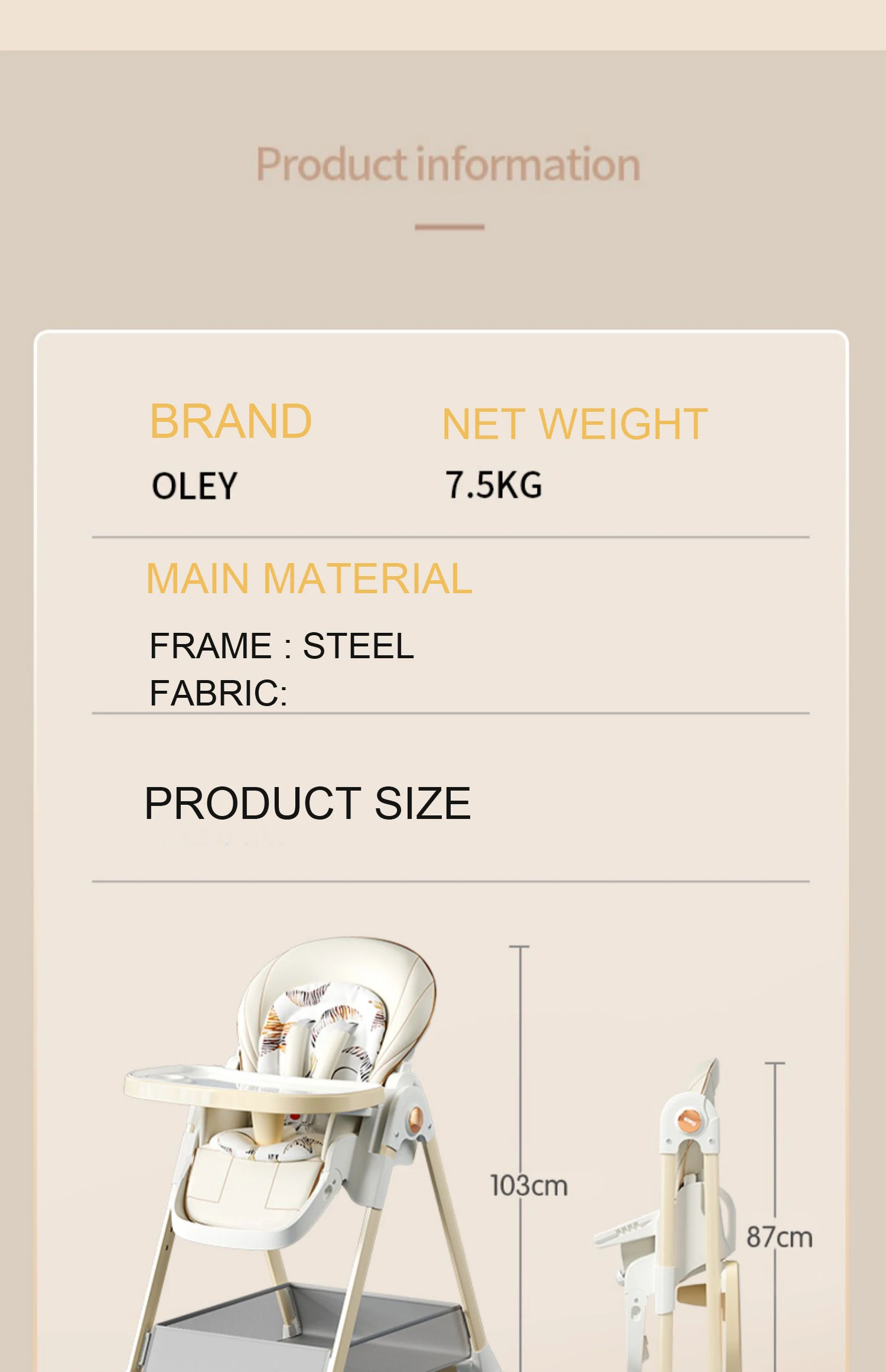 Safe and stable:The design of the baby dining seat is stable, ensuring that babies will not accidentally fall or slide during meals.