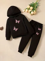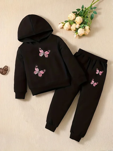 Baby Girl Baby Fashion Butterfly Pattern Hoodie+Sports Pants Two Piece Set Spring and Autumn Gift