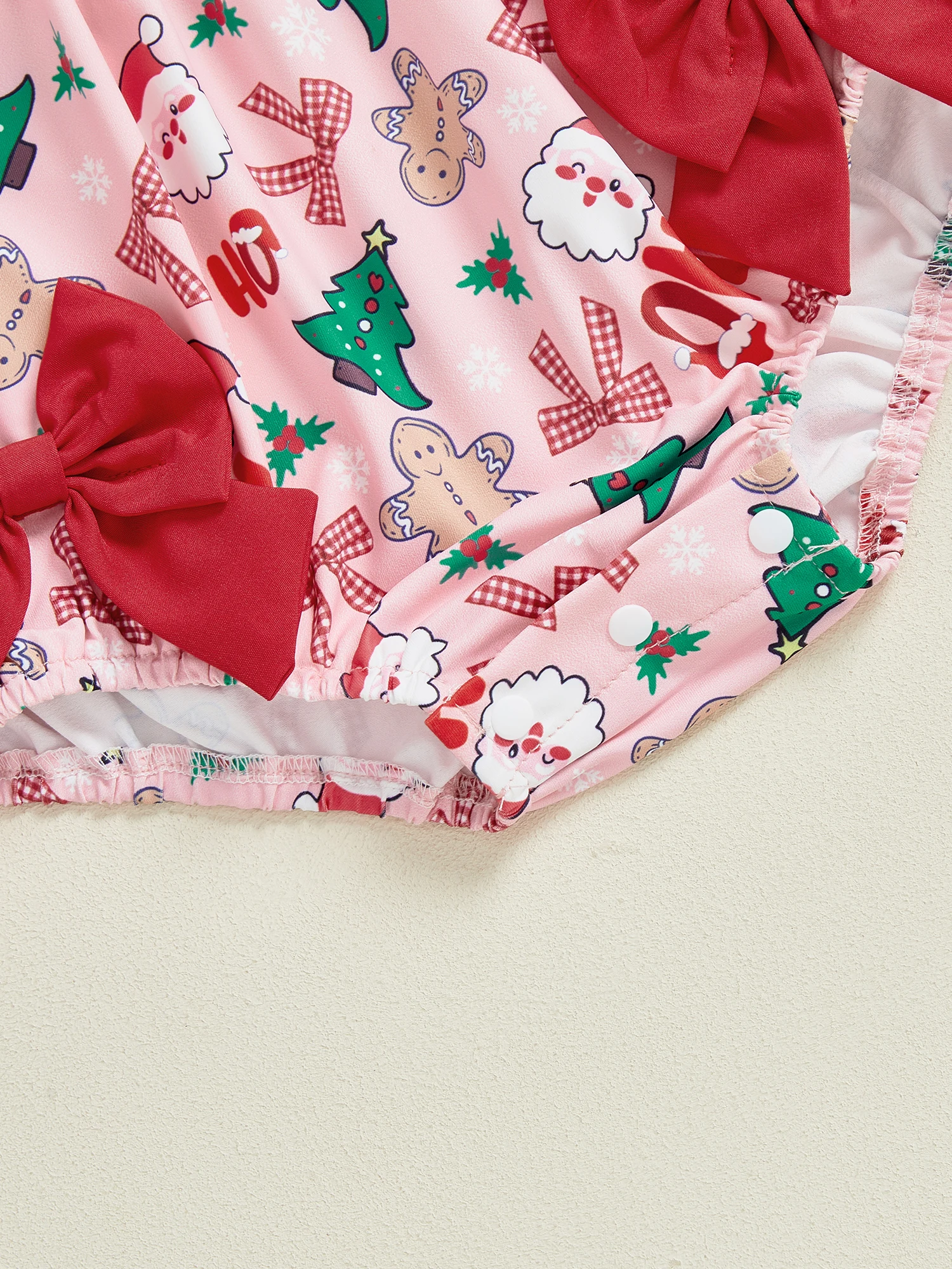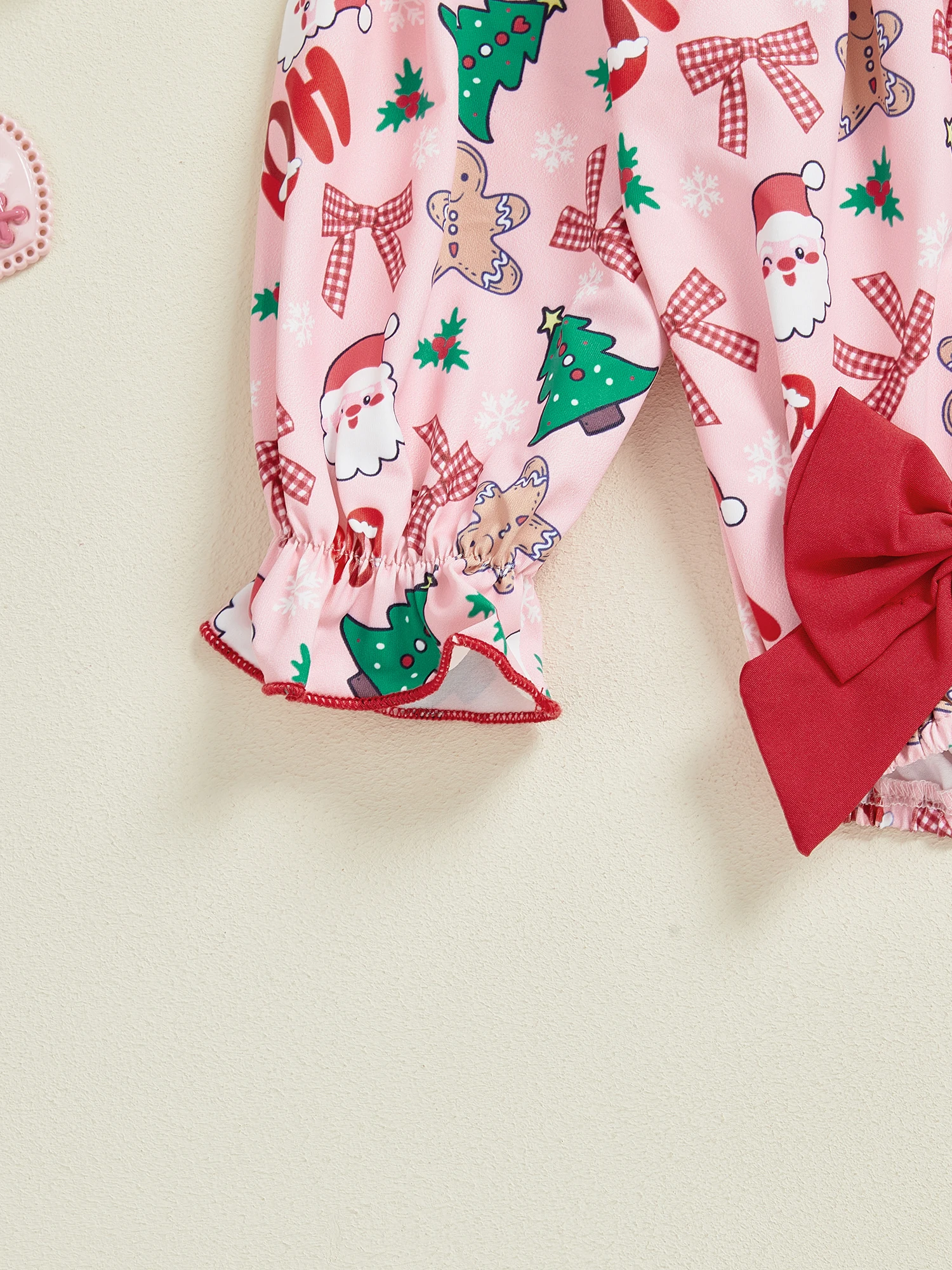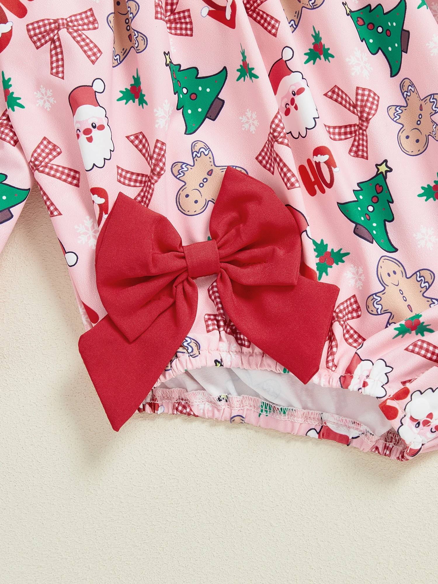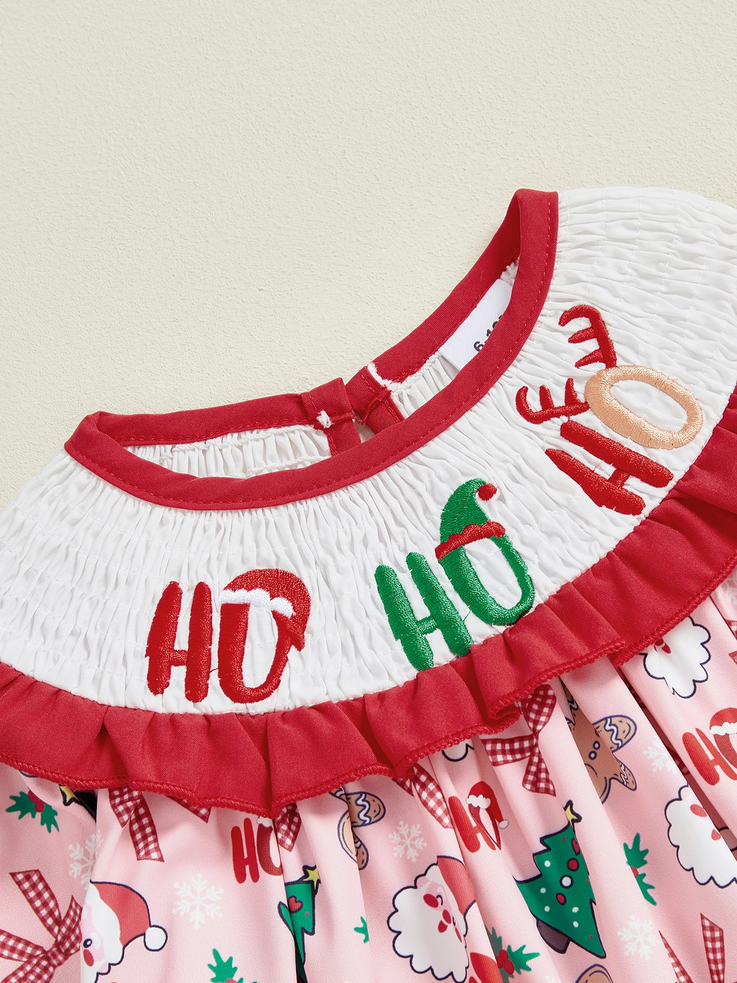 Baby Girl Bubble Romper Fashionable Christmas Tree Embroidery Smocked Long Sleeve Jumpsuit