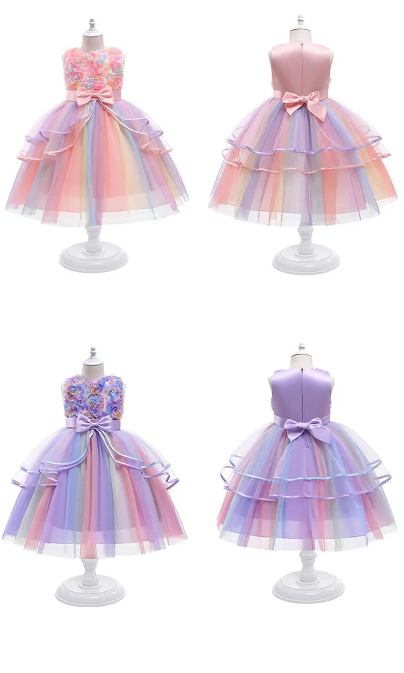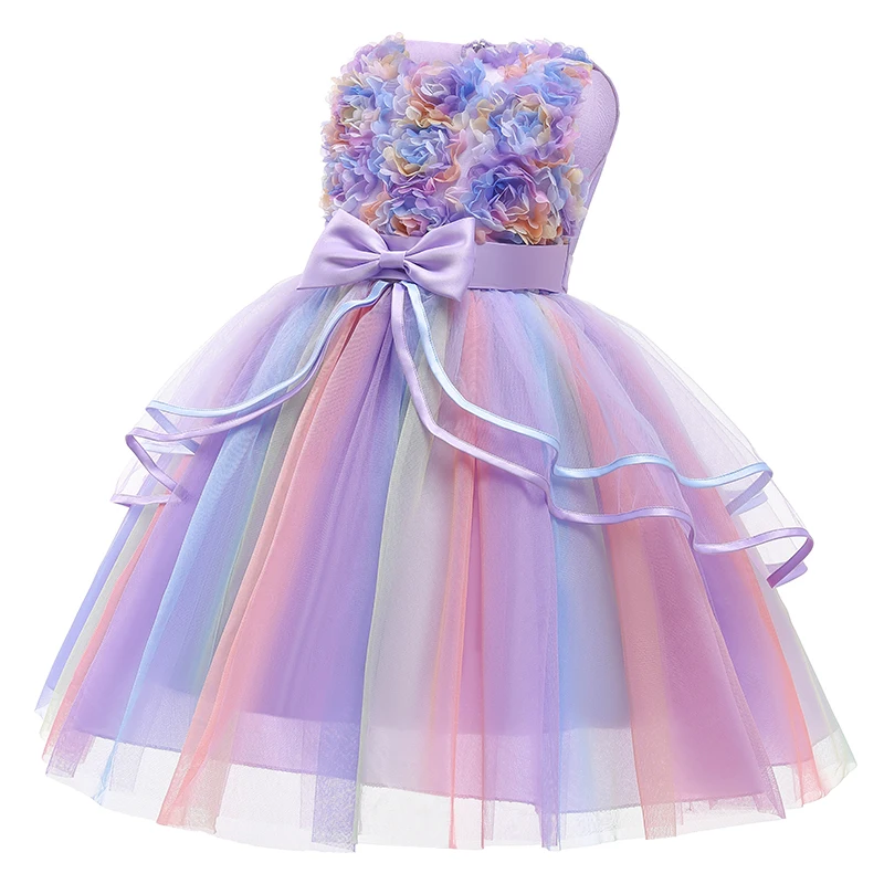 Baby Girl Dress Flower Girl Wedding Princess Dress Girl Christmas Bowknot Costume Kids Birthday Party Cake Skirt Tutu Girl Dress