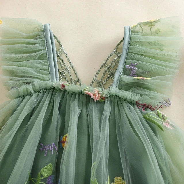 Baby Girls Romper Dress Mesh Flower Butterfly Embroidery Sleeveless Square Neck Adorable Jumpsuit