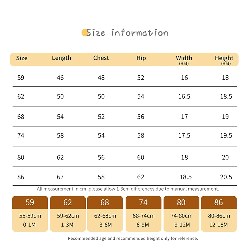 | size_info | {"sizeInfoList":[{"length":{"cm":"50","inch":"19.69"},"size":"3M","vid":-1},{"length":{"cm":"52","inch":"20.47"},"size":"6M","vid":-2},{"length":{"cm":"54","inch":"21.26"},"size":"9M","vid":-3},{"length":{"cm":"56","inch":"22.05"},"size":"12M","vid":-4},{"length":{"cm":"58","inch":"22.83"},"size":"18M","vid":-5}]} |