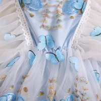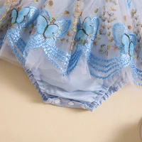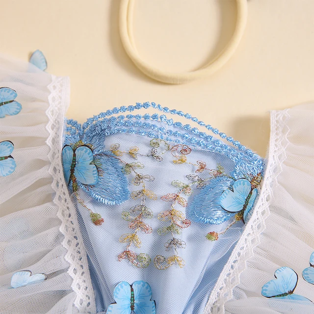 Baby Girls Rompers Dress Lace Trim Butterfly Pattern Embroidered Fly Sleeve Tulle Skirt Hem Bodysuits Clothes with Headband
