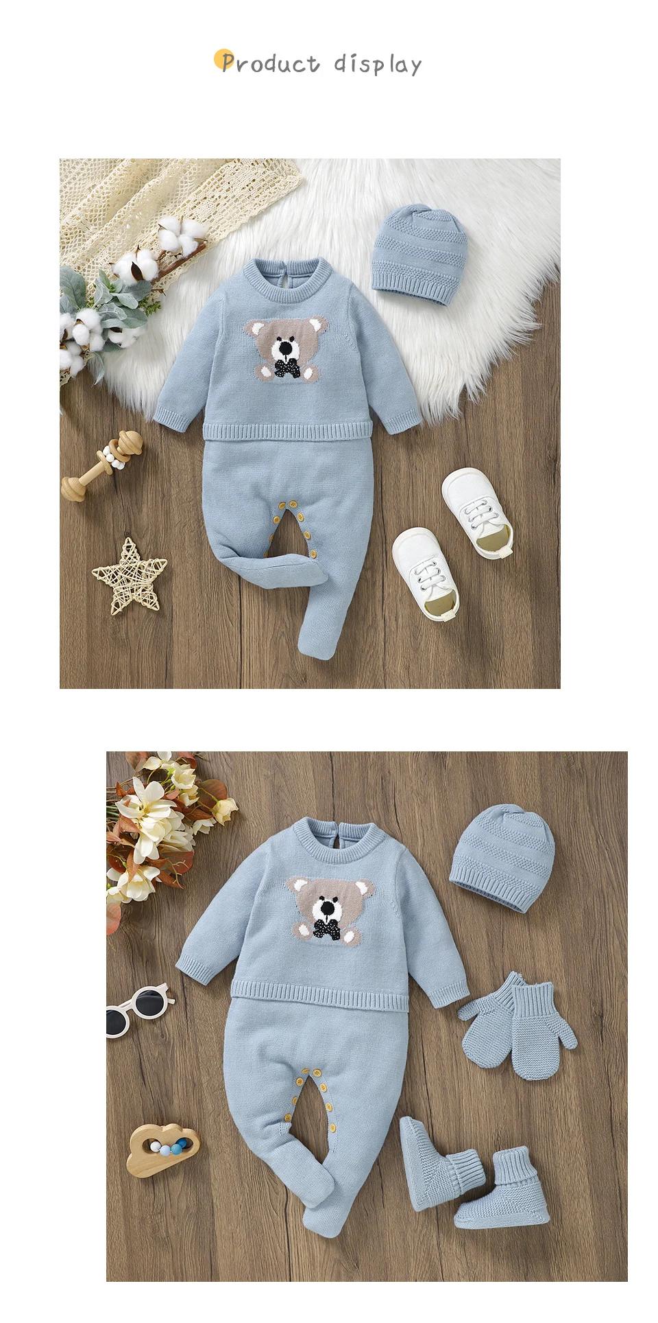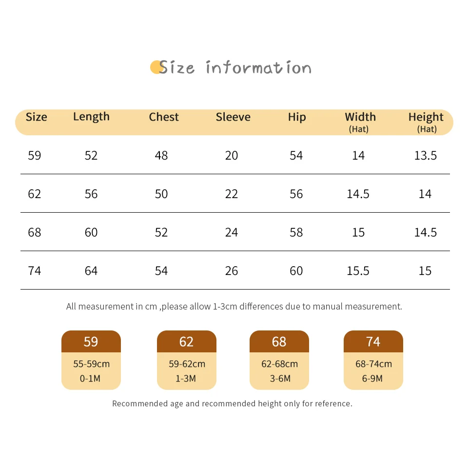 Be the first to review “Baby Rompers Hats Clothes Sets 0-18m Autumn Winter Newborn Boys Girls Jumpsuits Outfits 2pc/Set Long”