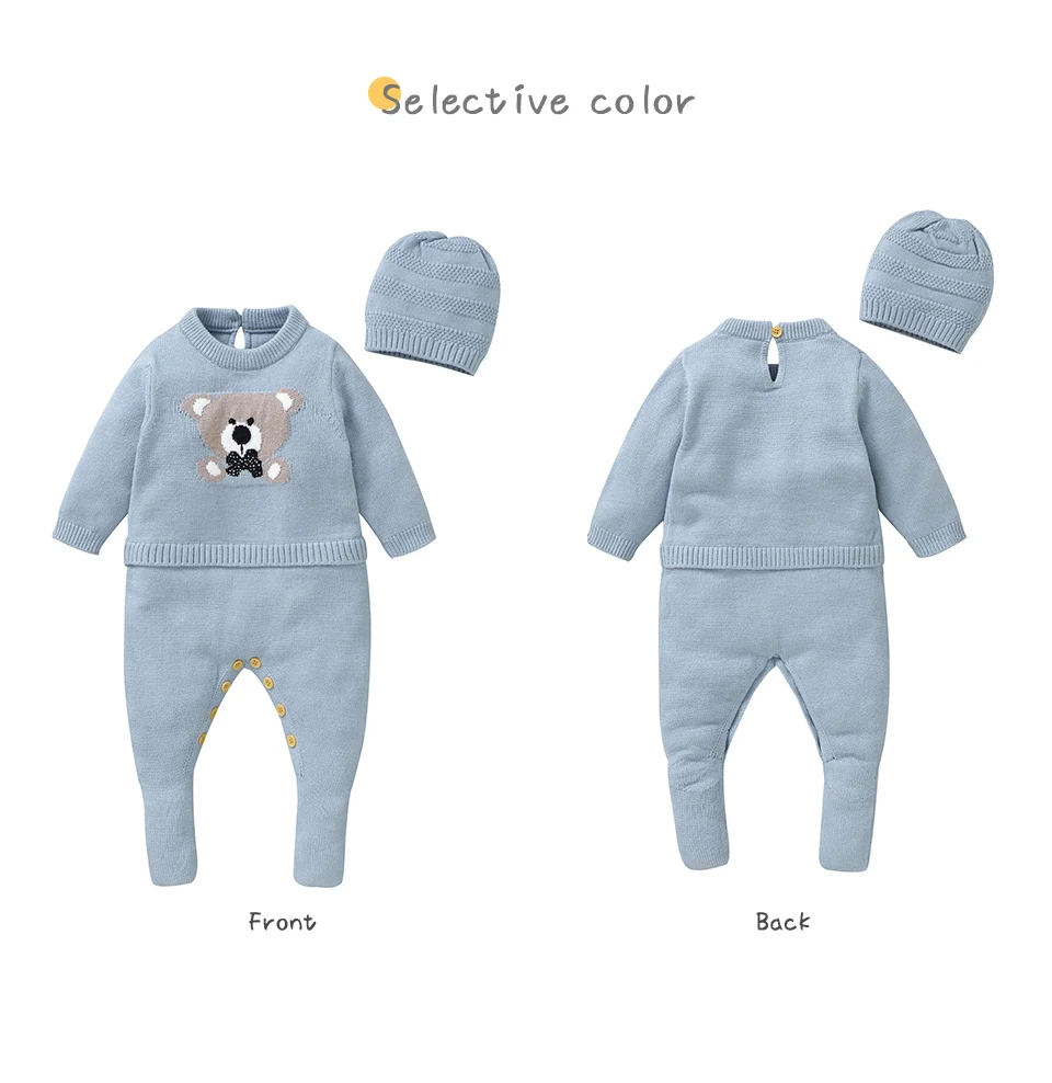 Baby Rompers Hats Clothes Sets 0-18m Autumn Winter Newborn Boys Girls Jumpsuits Outfits 2pc/Set Long Sleeve Toddler Knit Costume