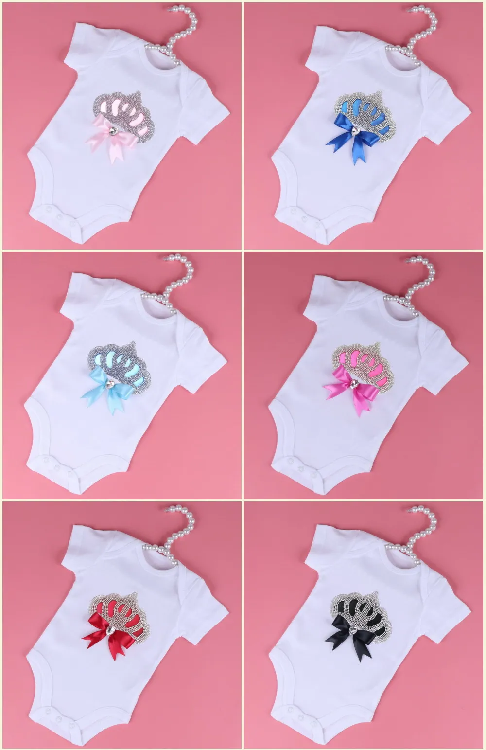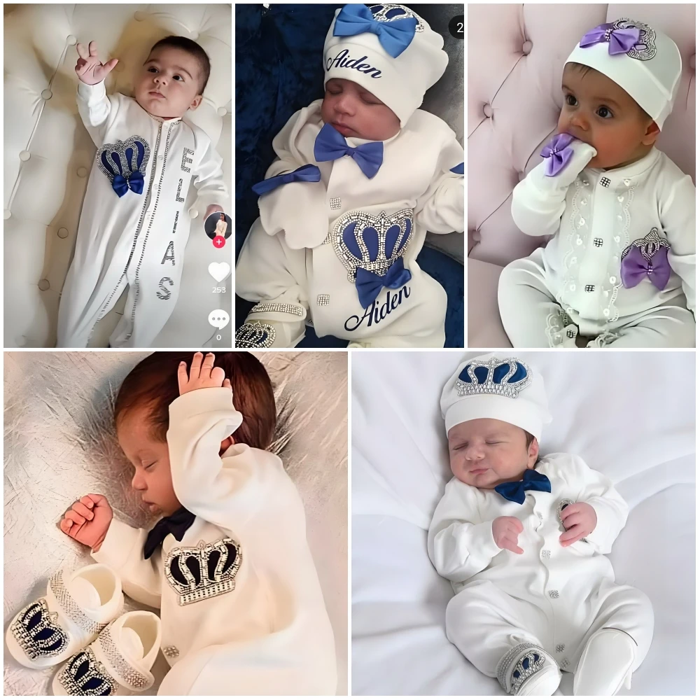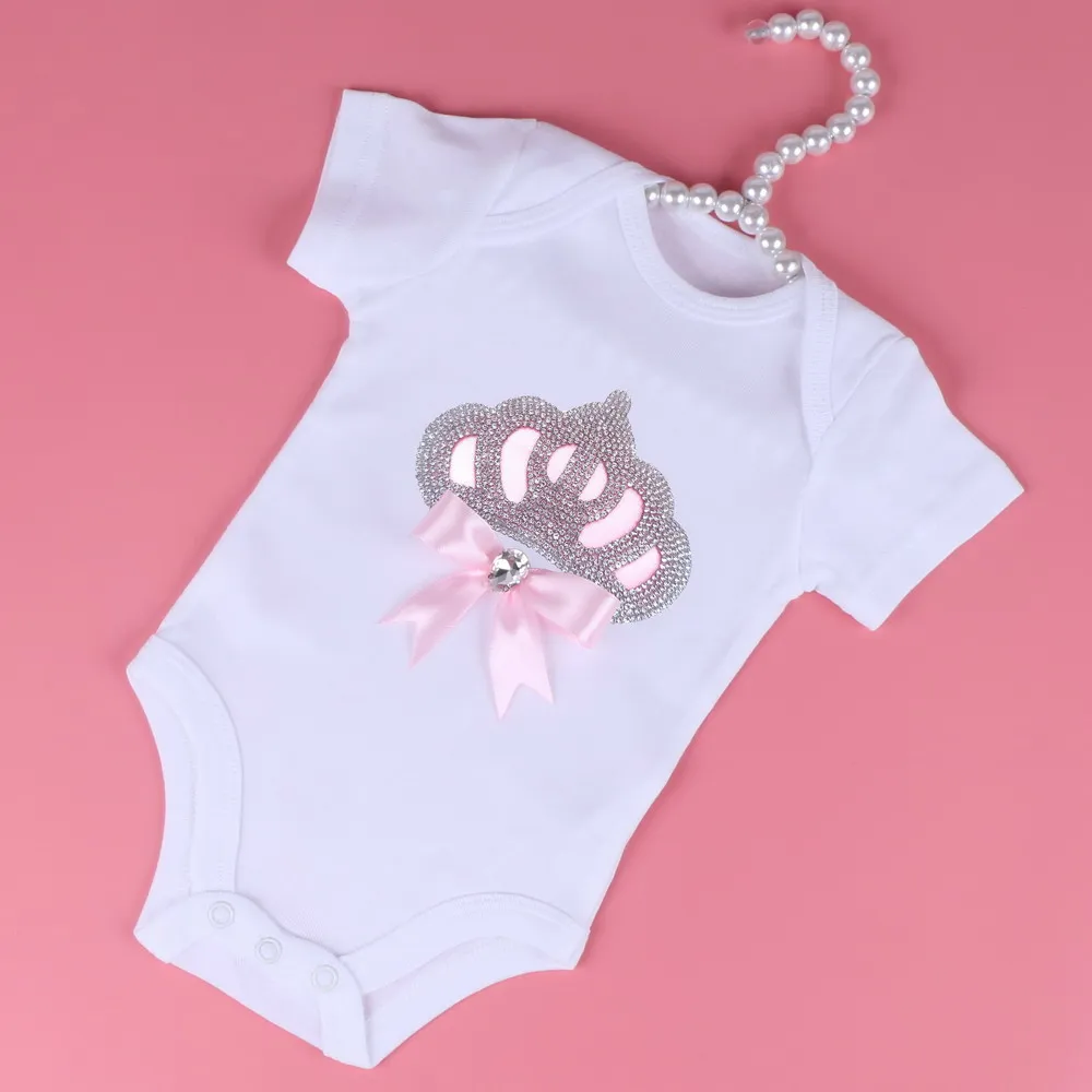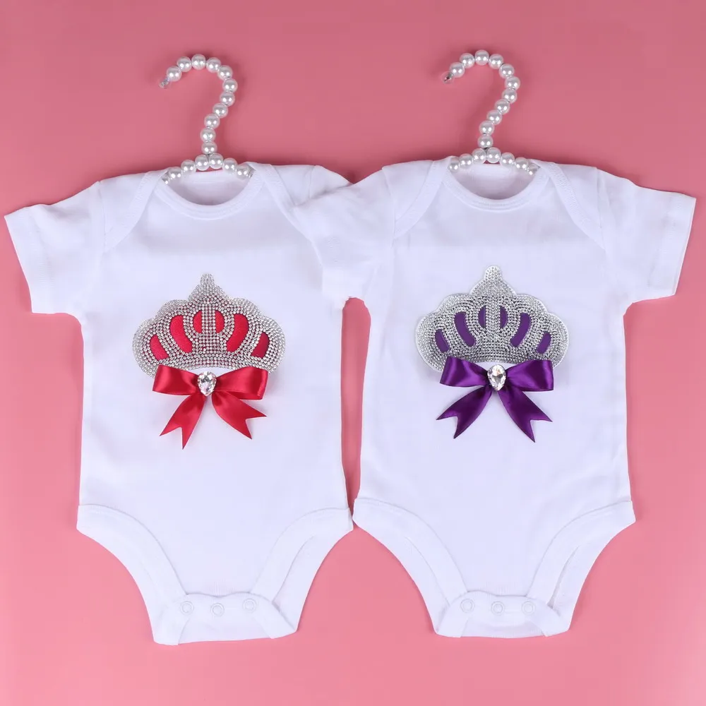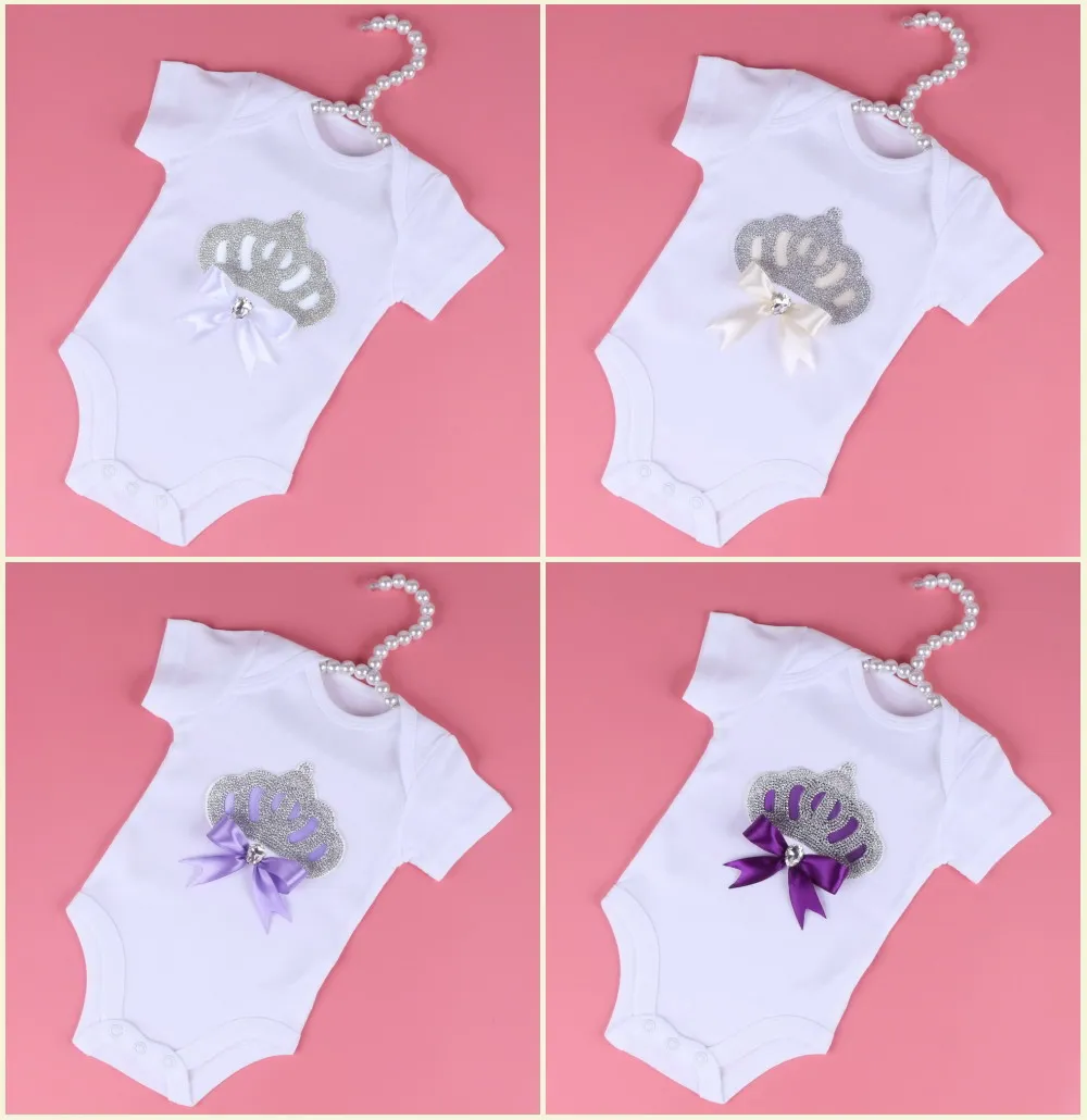 Baby Rompers With Luxury Crown pattern boys girls Bodysuits 3M-24M Size High Quality White Solid Baby