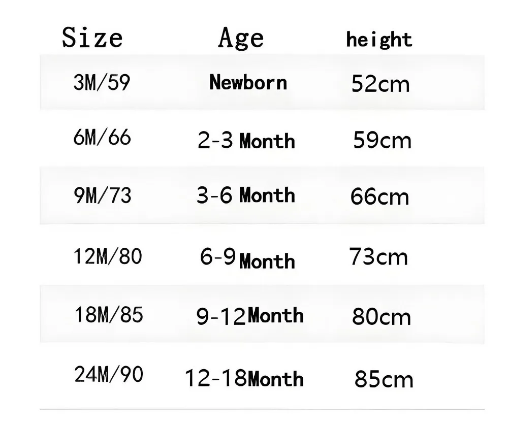 | size_info | {"sizeInfoList":[{"length":{"cm":"39","inch":"15.35"},"size":"3M","vid":-1},{"length":{"cm":"41","inch":"16.14"},"size":"6M","vid":-2},{"length":{"cm":"44","inch":"17.32"},"size":"9M","vid":-3},{"length":{"cm":"46","inch":"18.11"},"size":"12M","vid":-4},{"length":{"cm":"48","inch":"18.90"},"size":"18M","vid":-5},{"length":{"cm":"50","inch":"19.69"},"size":"24M","vid":-6}]} |