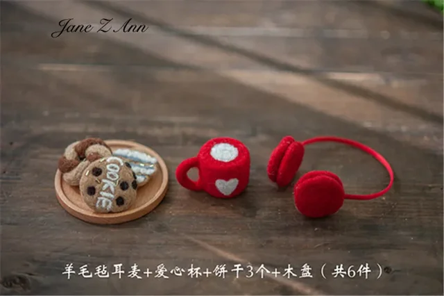 Baby wool felt palette French fries headset biscuits love cup  photography creative props studio shooting accessories