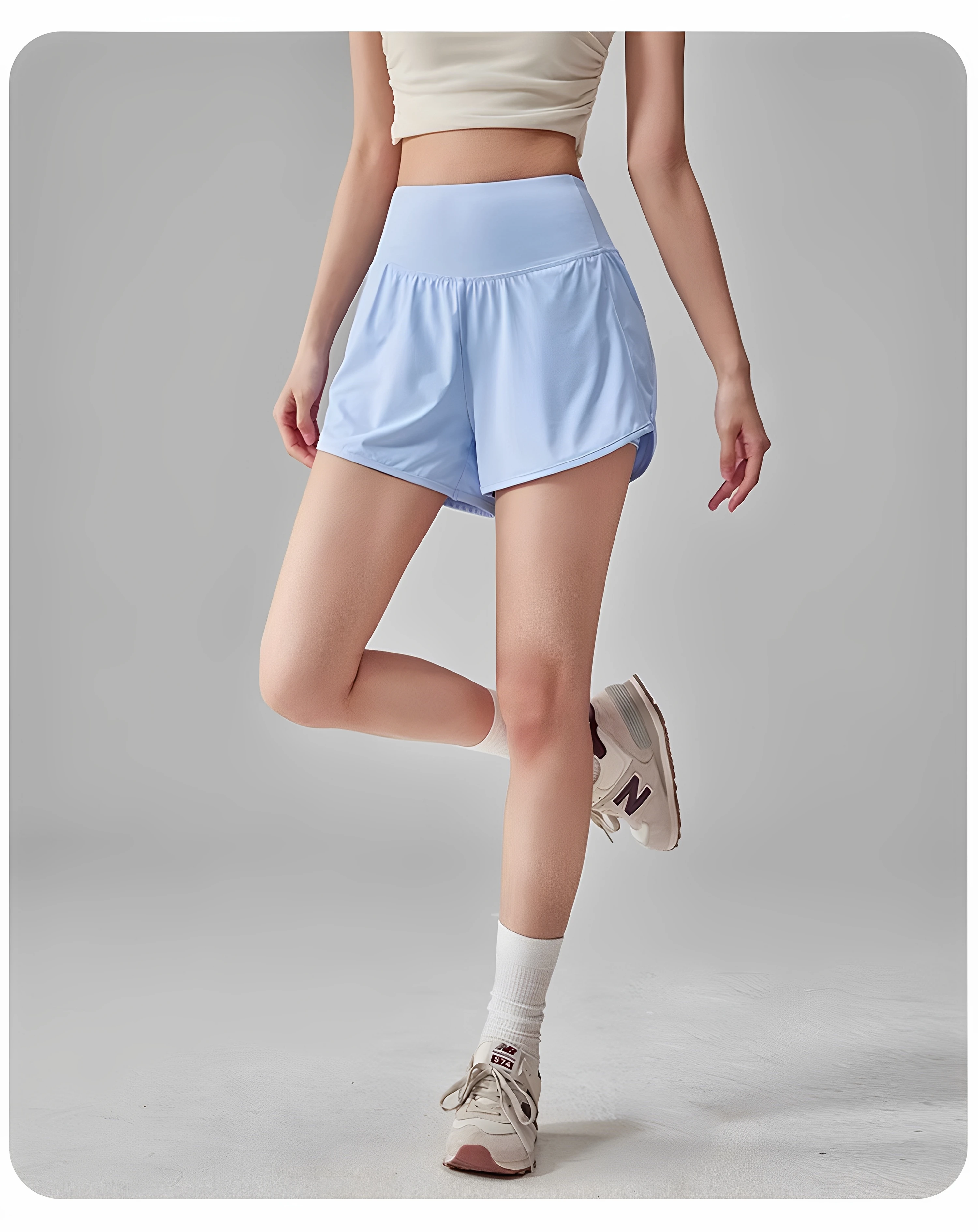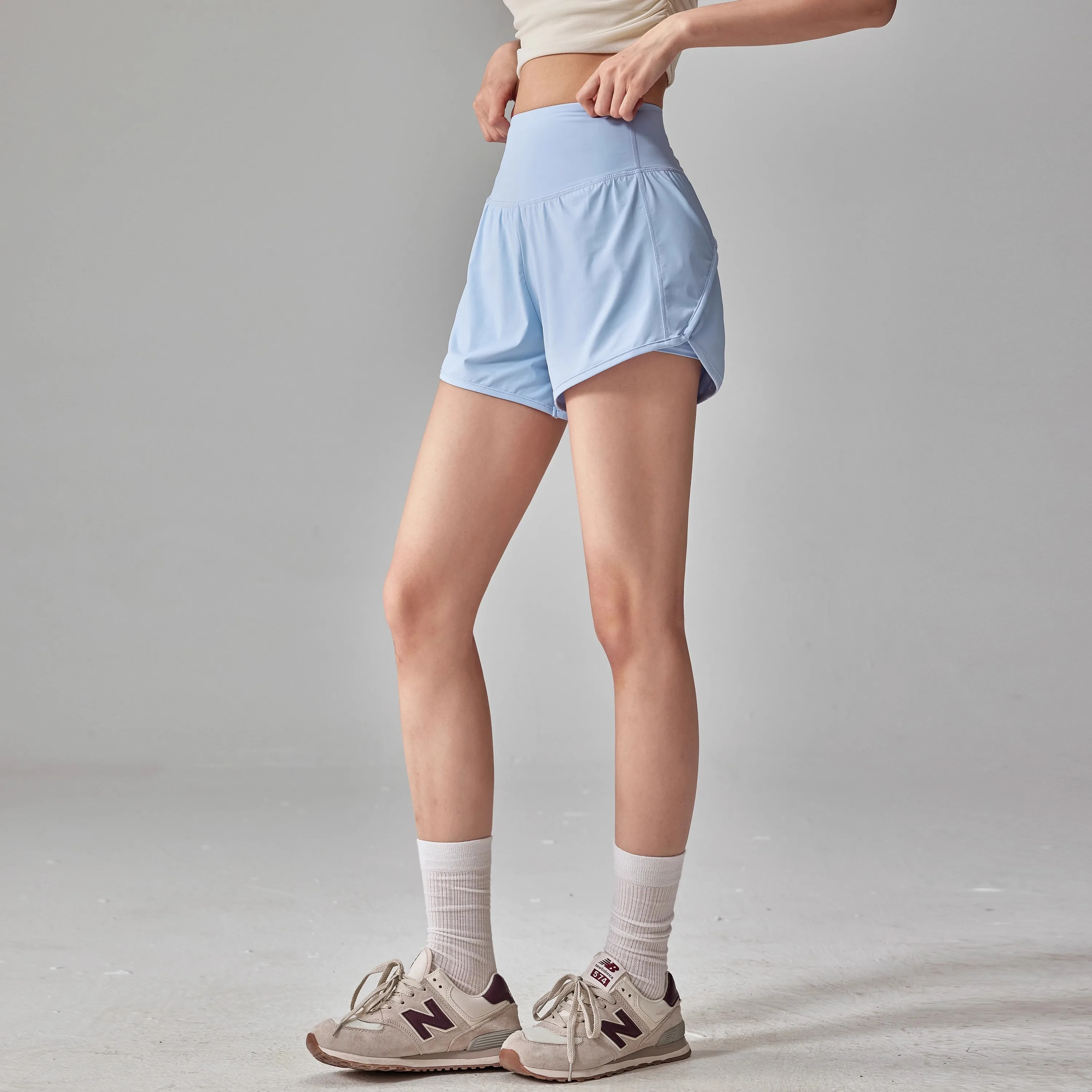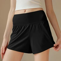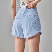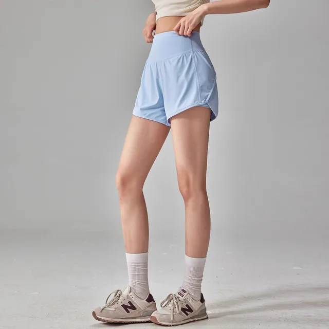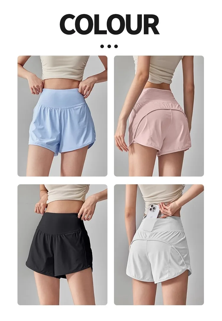 Anti-glare Lining 2 in 1 Yoga Shorts Side Pockets Hem Elastic Sports Shorts Loose Fitting Breathable Fitness Shorts Summer