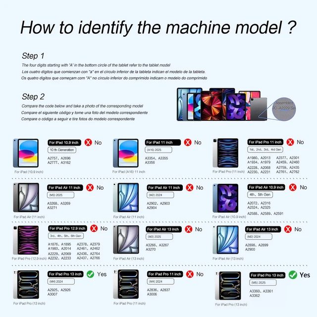 1.Turn iPad tablet to the back find your specific model,Par exemple: A ****