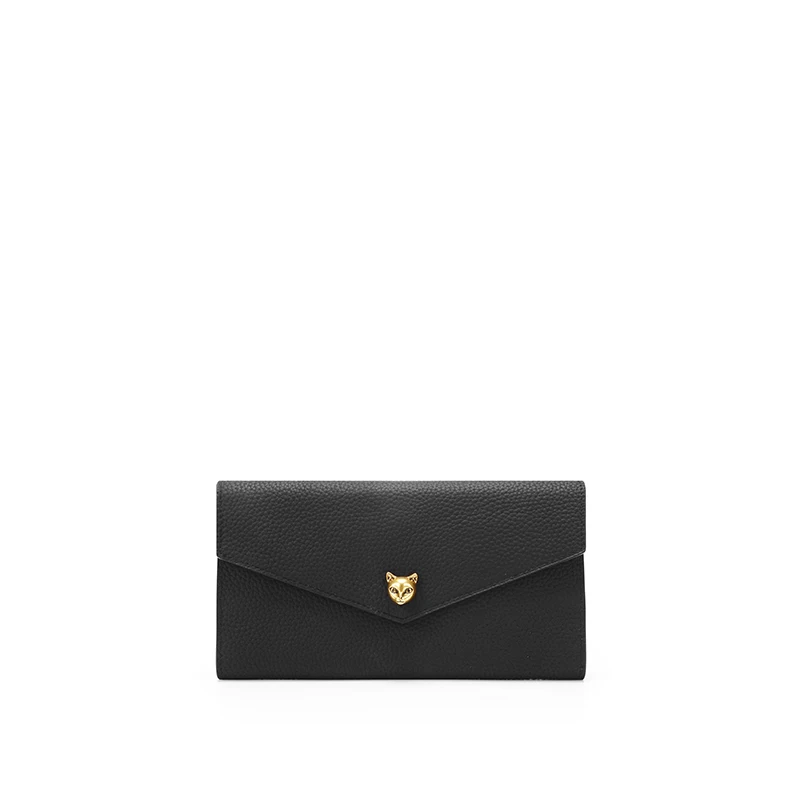 BAFELLI Designer Cat Head Genuine Leather Long Wallet for Women with Multi-card Slots