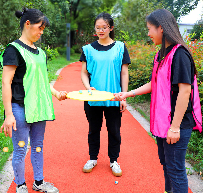 Game Rules: 1.Group of 3 ,put Golf or rubber ball on board ,Everyone holds the board with his index finger and transports it to the destination.2.If the ball falls in the game, The group need to back to starting point,The winner who gets the most balls in the specified time