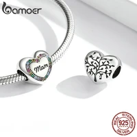 BAMOER 925 Sterling Silver Heart-shape Charm Beads Fit Original Charm Bracelet Inlaid Zircon Colorful
