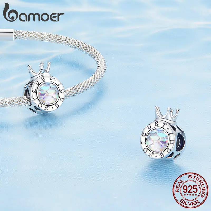 BAMOER 925 Sterling Silver Heart-shape Charm Beads Fit Original Charm Bracelet Inlaid Zircon Colorful Pendants DIY Accessories