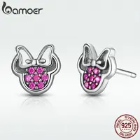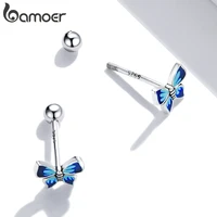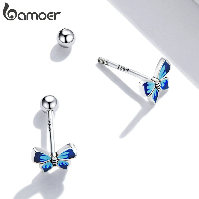 Bamoer 925 Sterling Silver Luxury Girl Earrings Rainbow Butterfy Cute Fancy Funny Ear Stud Original for