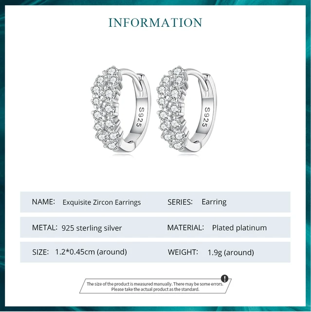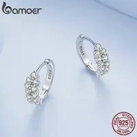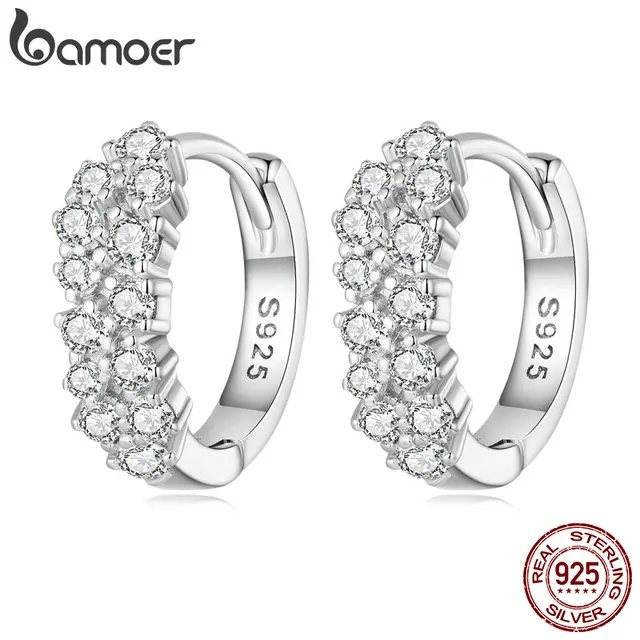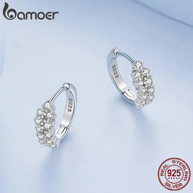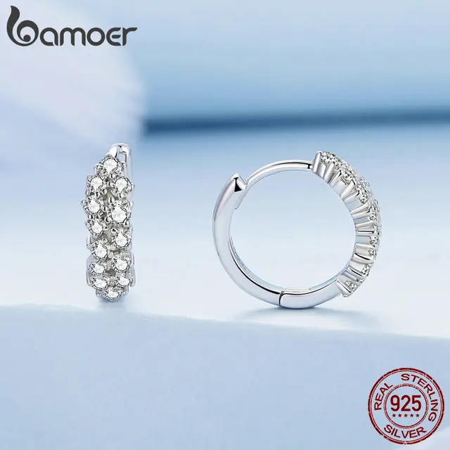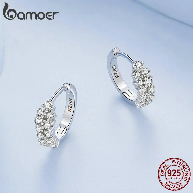 Bamoer 925 Sterling Silver Shiny Zircon Ear Buckles for Women Luxury Earrings Fine Jewelry Anniversary