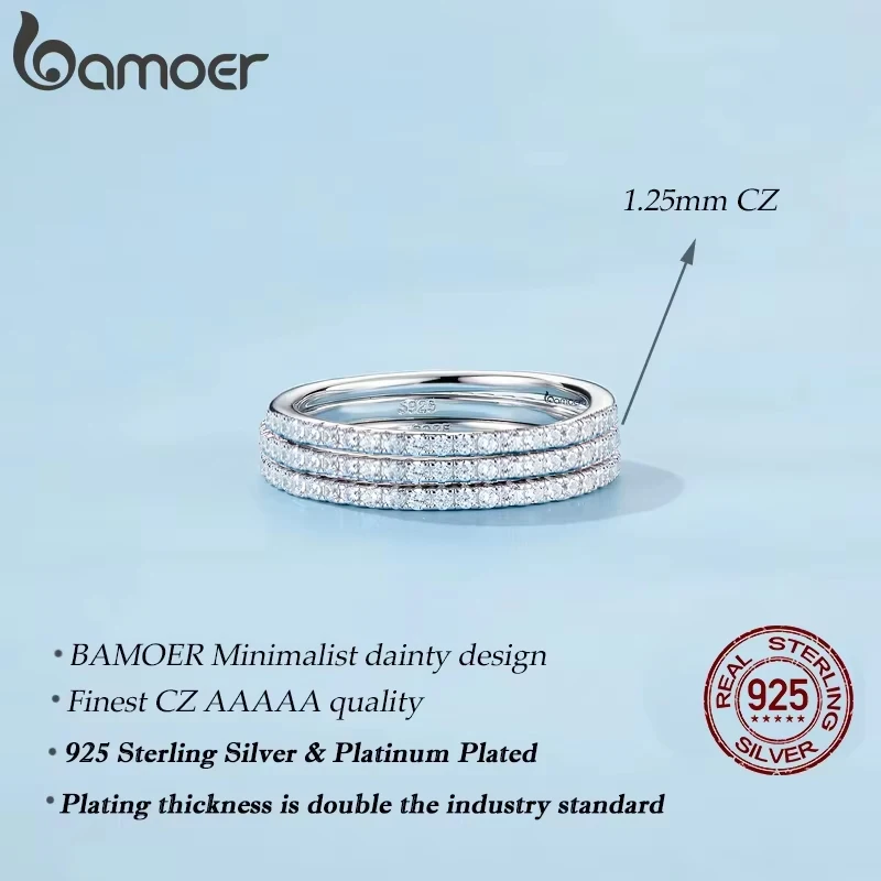 BAMOER White Gold Plated Solid 925 Sterling Silver CZ Simulated Diamond Stackable Ring Eternity Bands