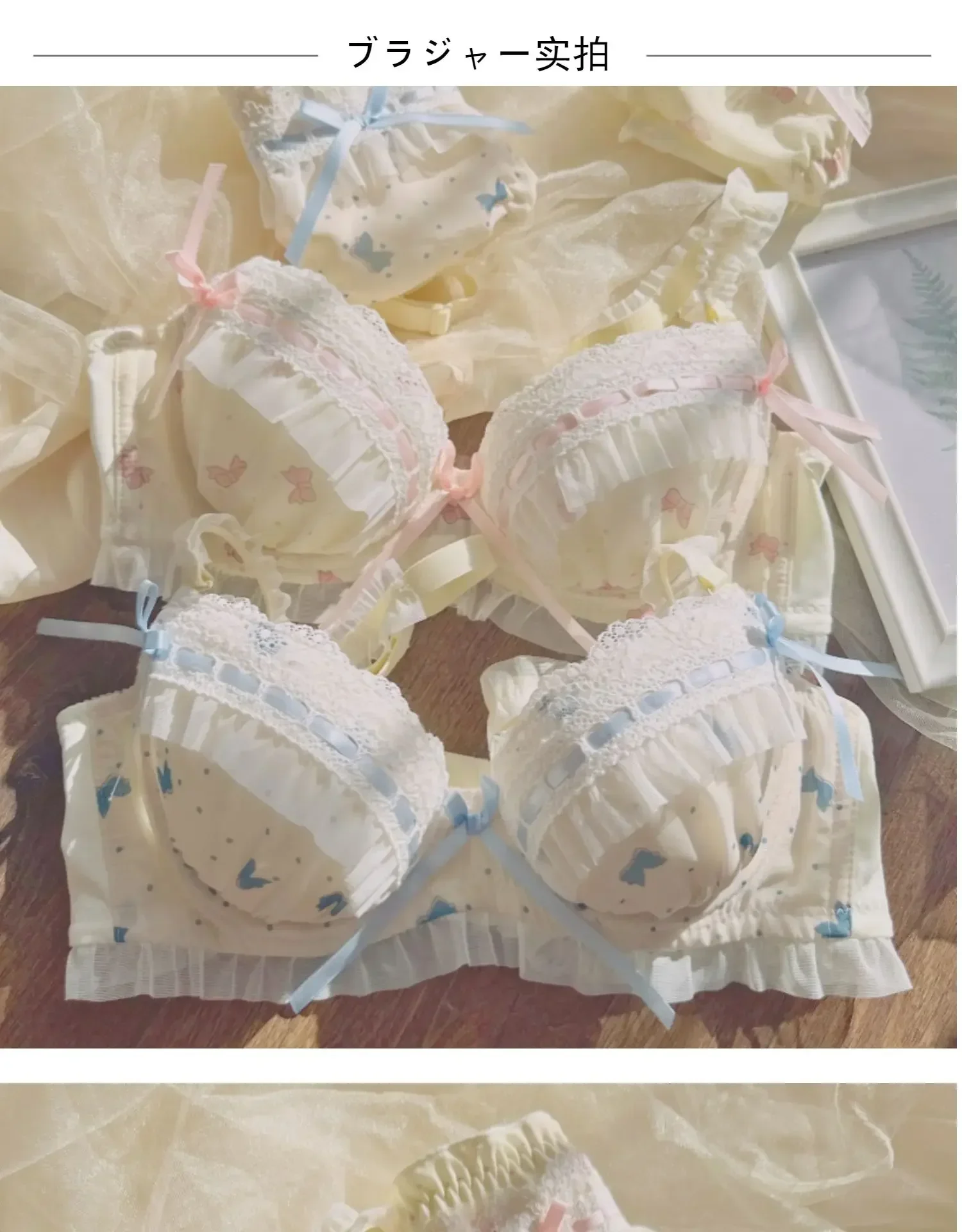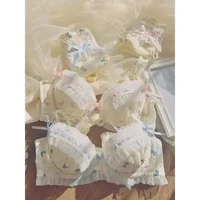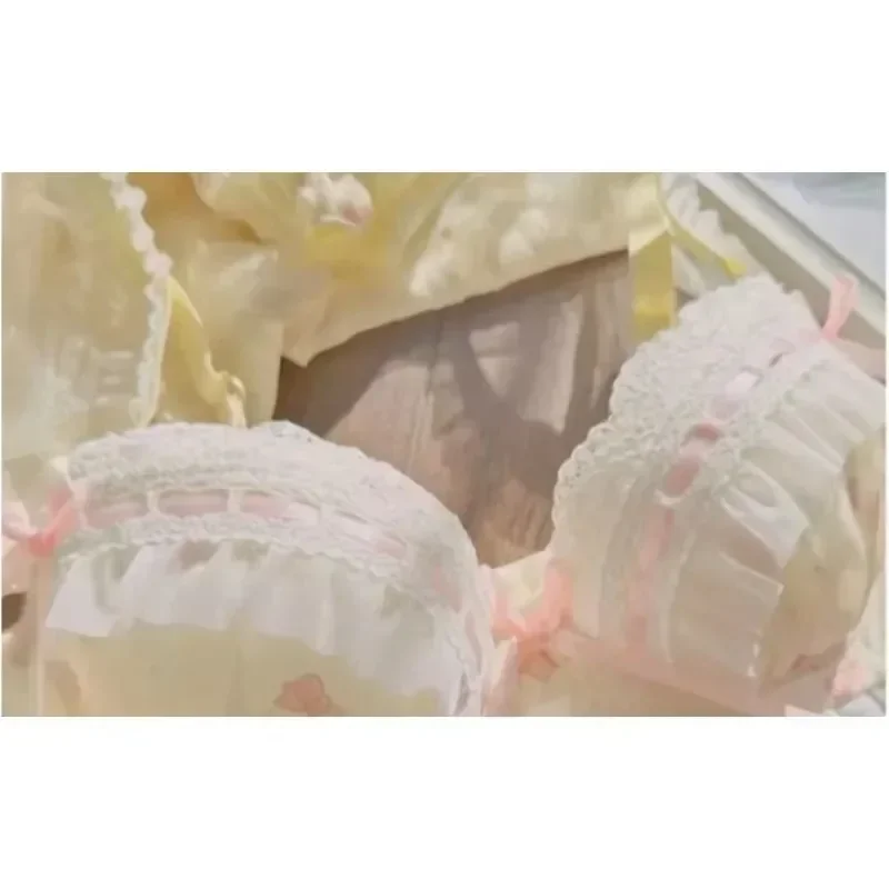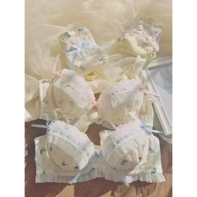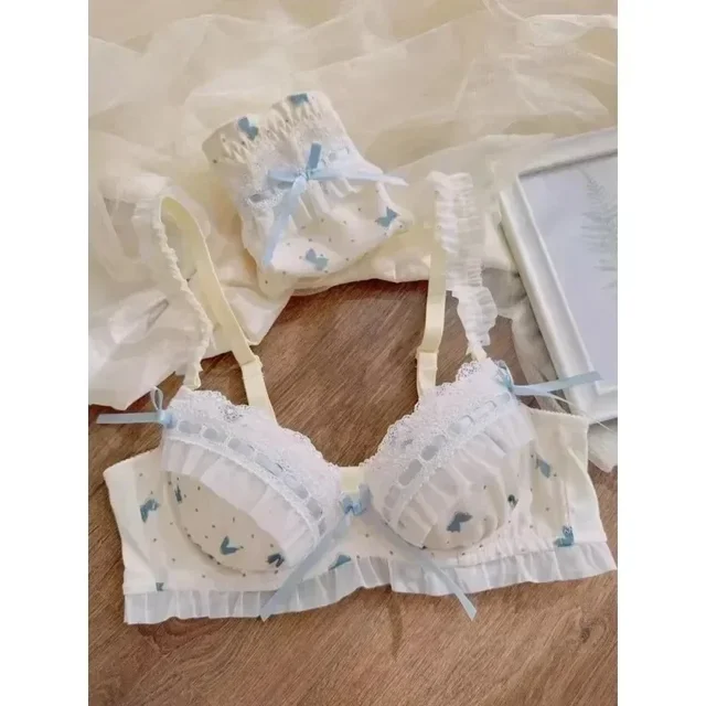 BANERDANNI Pure Desire Lolita Cute Princess Style Cup Bra Set Printed Cute Bow Bra Comfortable Lace Underwear