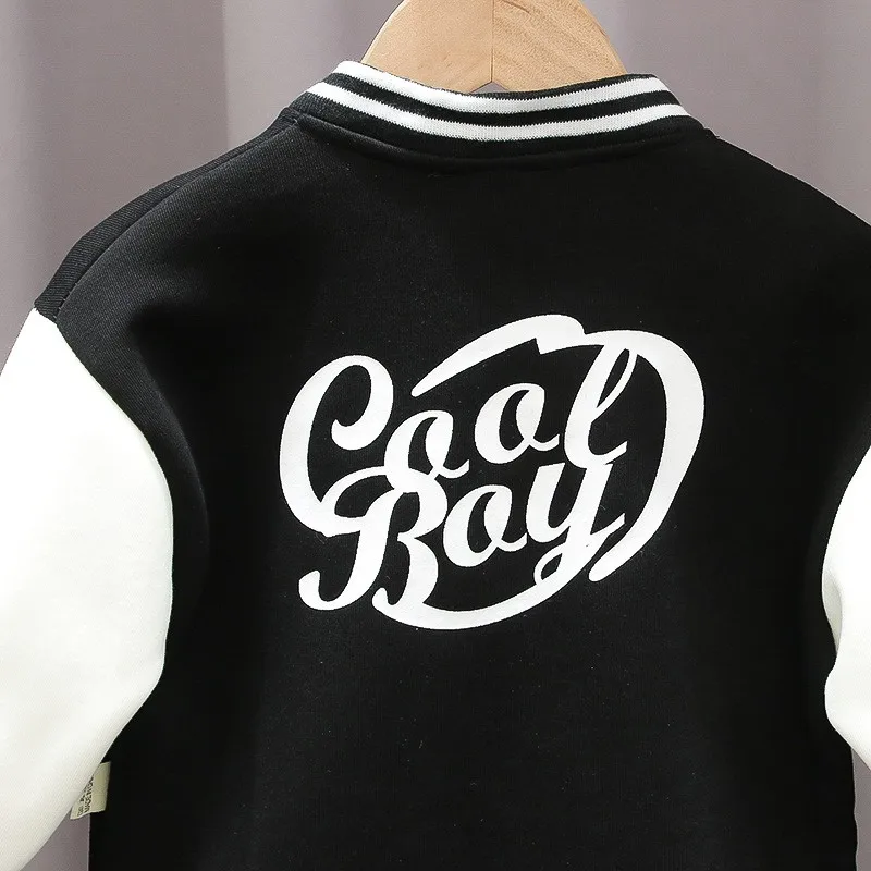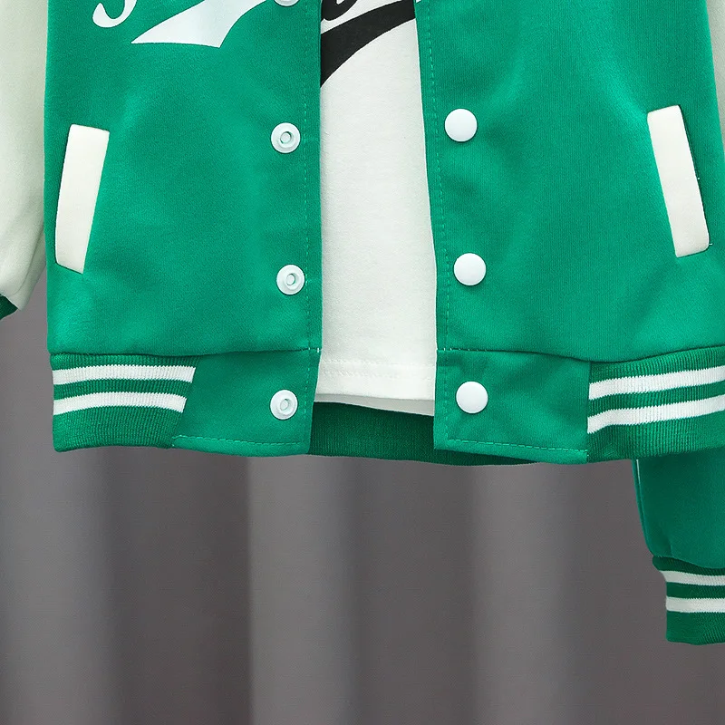 Baseball Coat+T-Shirt+Pant 3pcs Set Kids Boys Girls Spring Autumn Letter Print Sweatshirts Black Sports