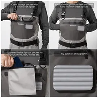 Large chest storage pocket with waterproof zipper closure; Reach-through fleece hand warmer pocket; Interior chest zippered pocket flips out for easy access; With a detachable fly patchon chest