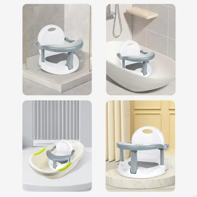 This children shower stool features a foldable design, making it easy to store and carry. When not in use, it can be easily folded up and occupies a small space, making it very suitable for use at home or during travel.