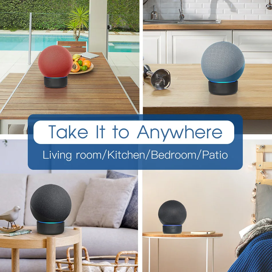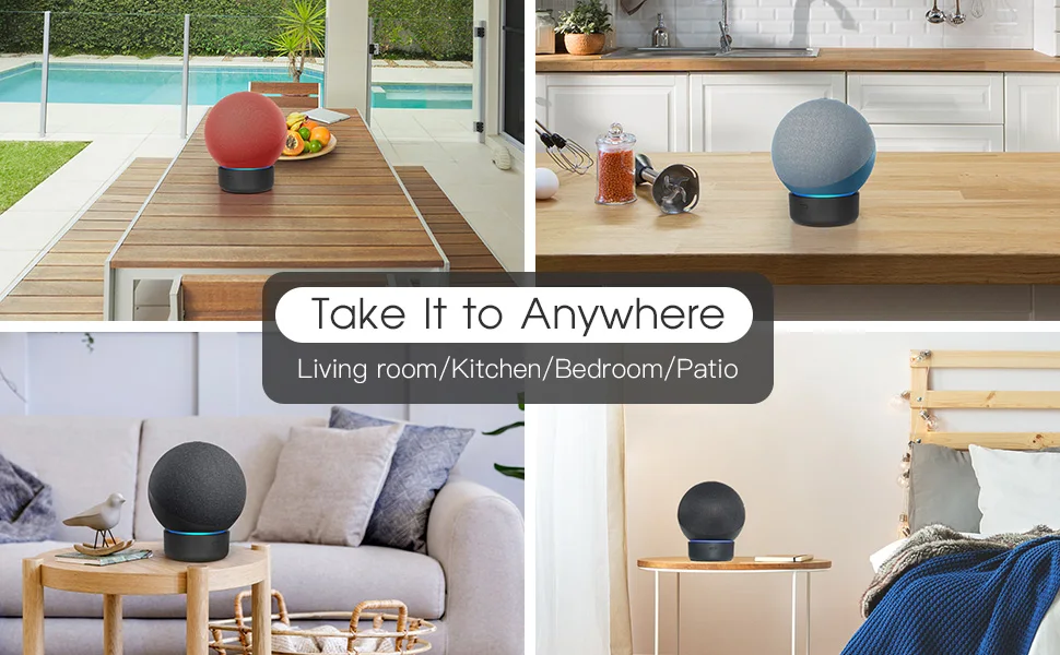 With the embedded rechargeable battery, our portable battery base for Dot 4th Gen can be released from the power outlet. The lightweight design allows you to use our battery charger in the kitchen, bathroom and living room etc. and also enables you to take it out on the balcony, porch and backyard to listen to music. Even then you can take a rest in your office.