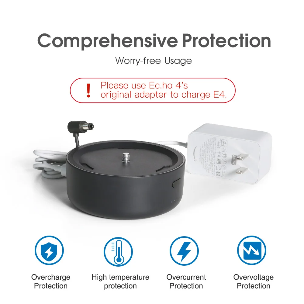 Note: To save resources, we do not provide an additional power adapter for E4, you can use the original adapter that comes with Echo to charge the E4 battery base directly.