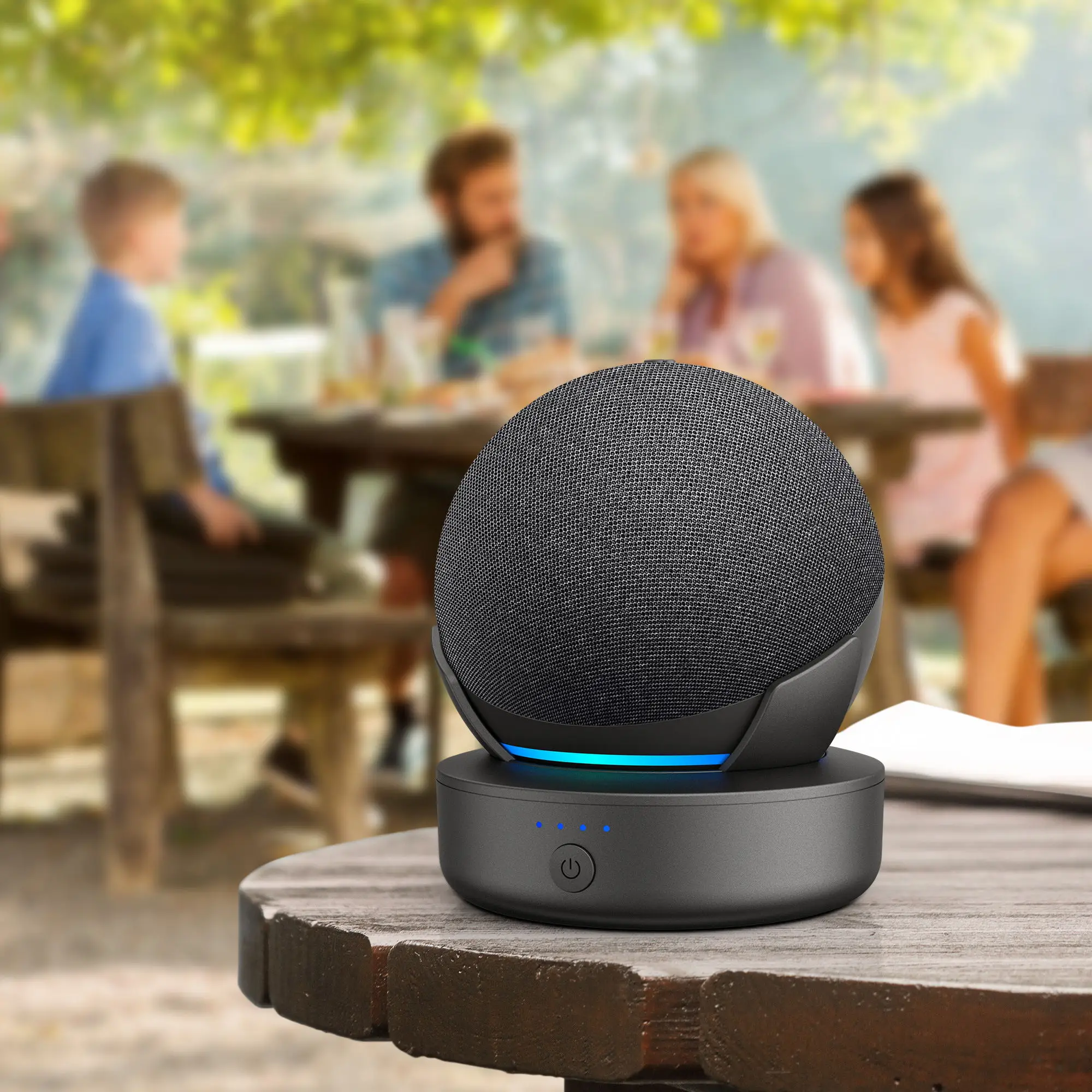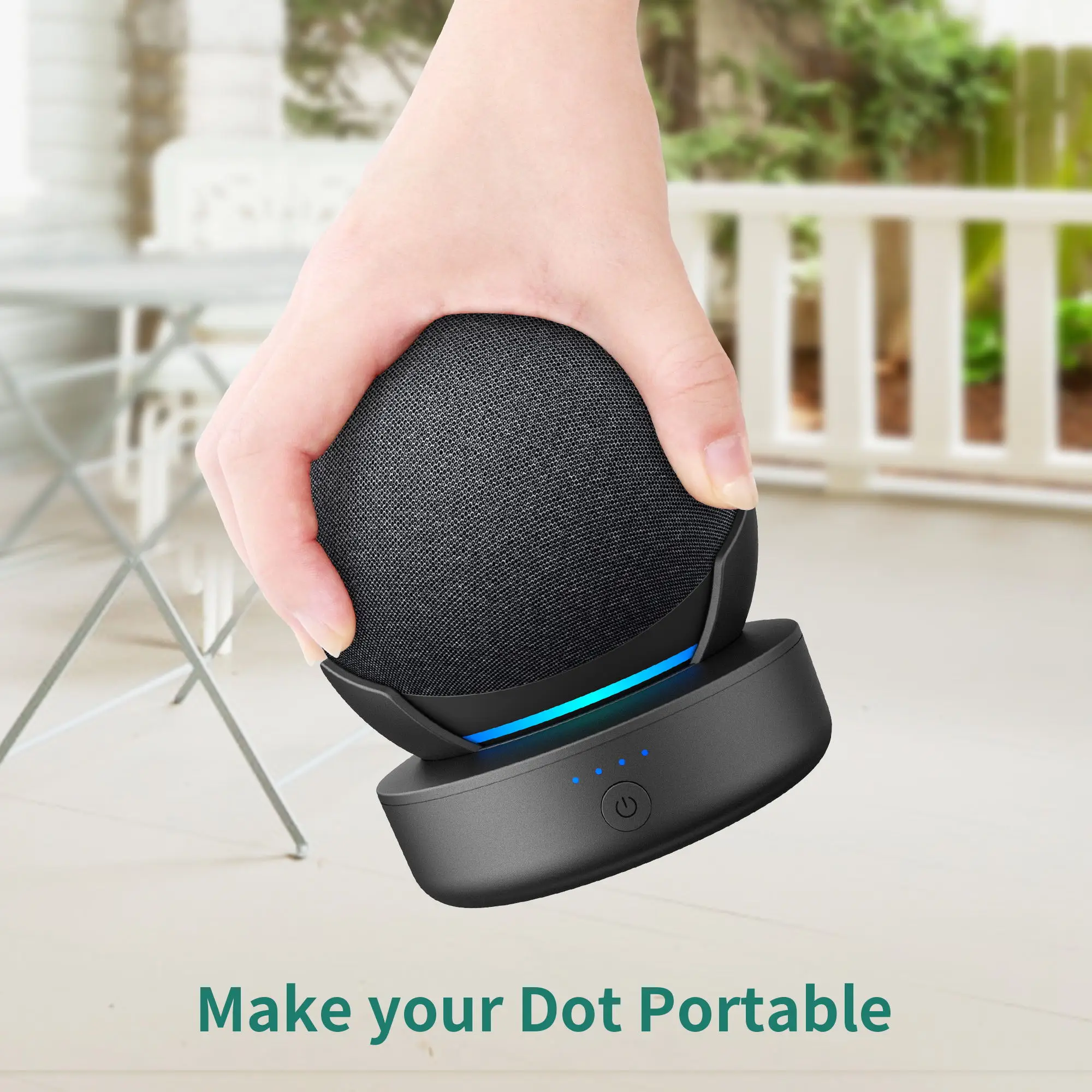 3. Plug and Play: Just push your Dot 4th 5th to the E02 battery base, press and hold the power button for about 2 seconds, and then you are free to take it around.