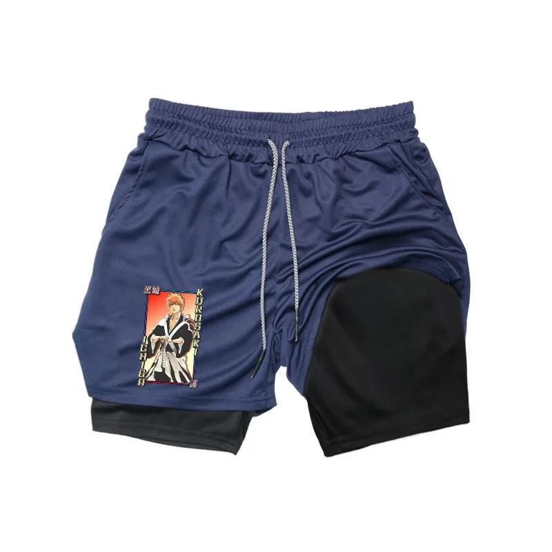 Anime IPPO Compreesion Shorts for Men Gym Workout Running Athletic 2-in-1 Performance Shorts with Pockets Activewear Beach Short