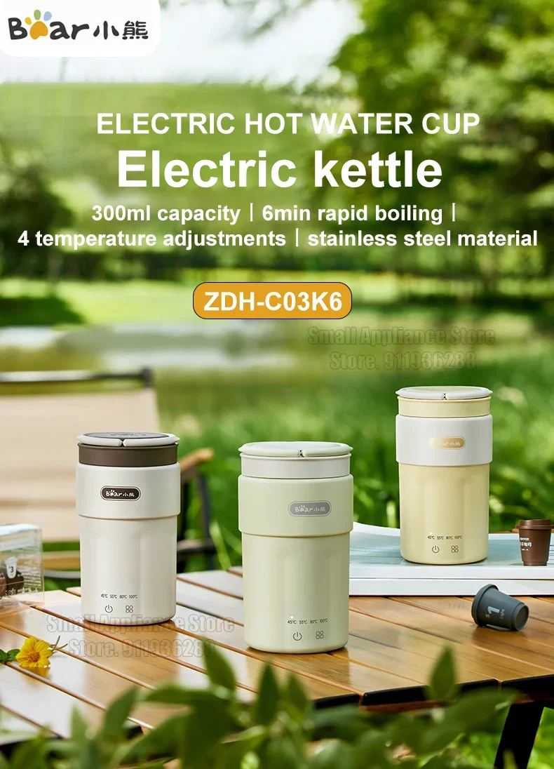 Bear Portable Electric Kettle For Travel Stainless Steel Mini Kettle Electric Water Bottle Thermal Cup For Tea Coffee Boil Hot Water