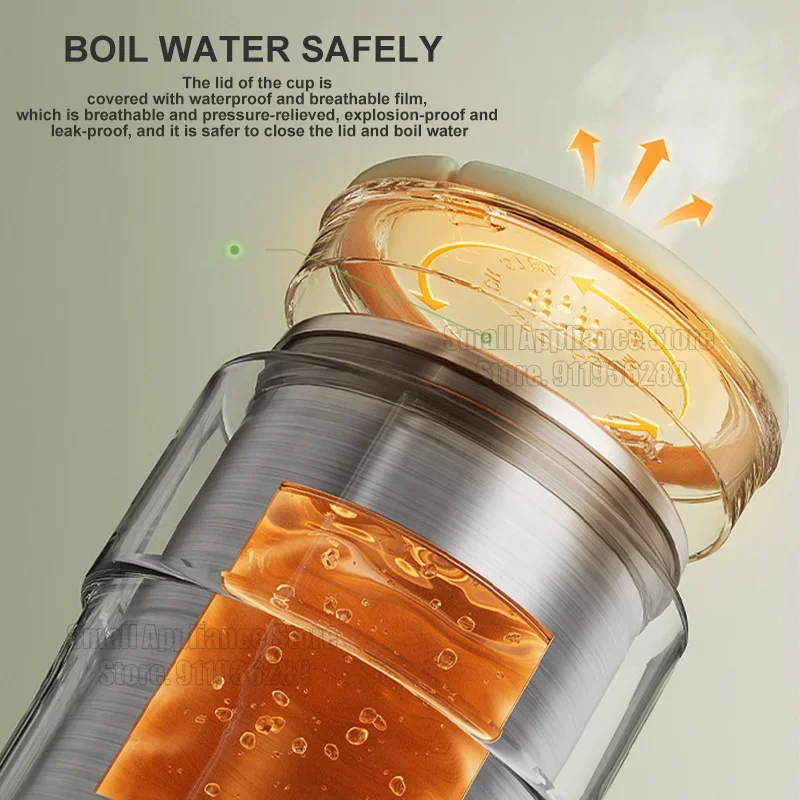 The lid of the cup is covered with waterproof and breathable film, which is breathable and pressure-relieved, explosion-proof and leak-proof, and it is safer to close the lid and boil water