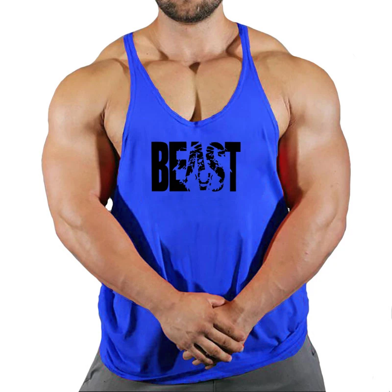 BEAST Brand Vest Muscle Sleeveless Singlets Fashion Workout Sports Shirt Mens Bodybuilding Fitness Top Men Gym Tank Top Clothing