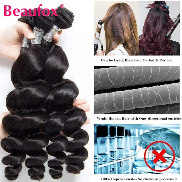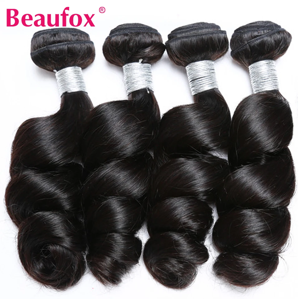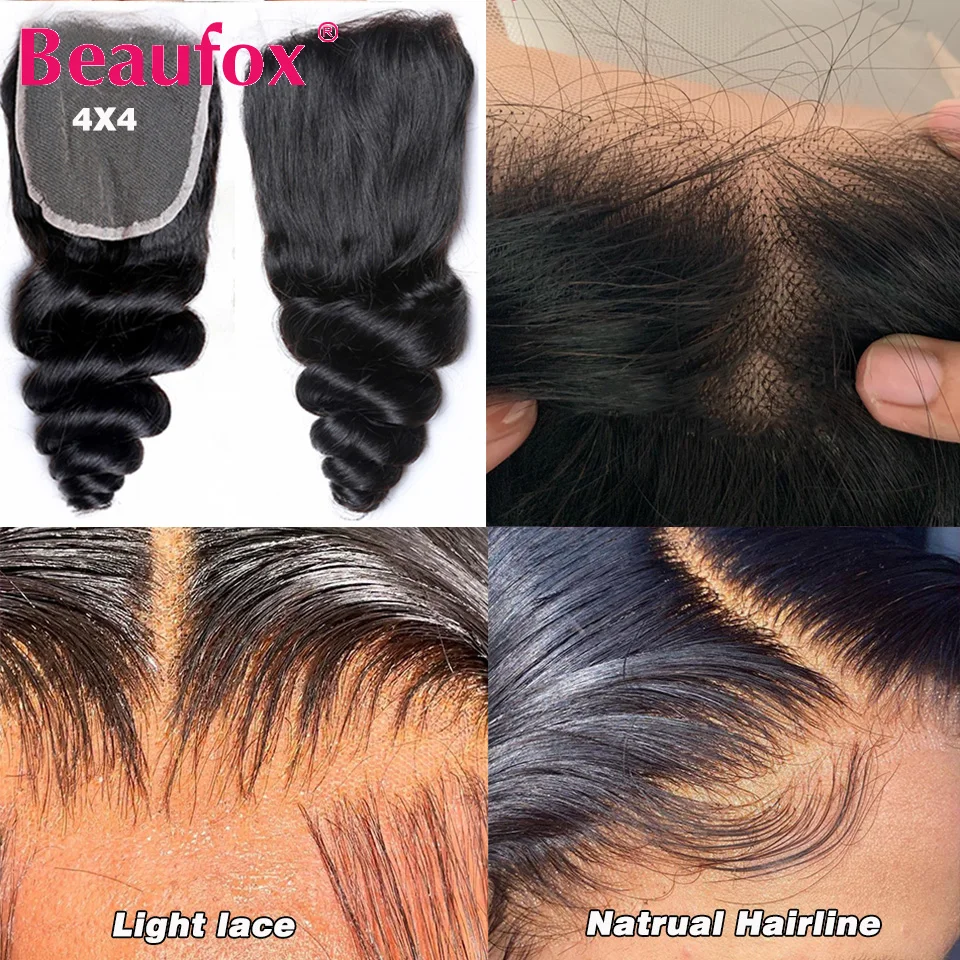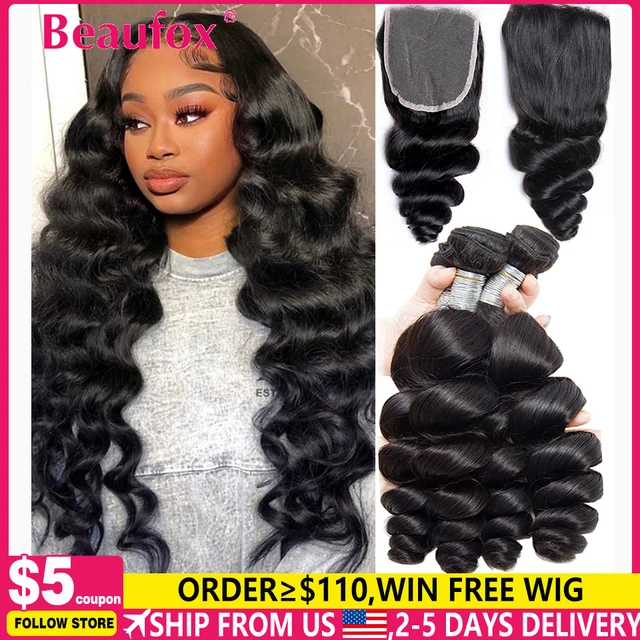 Beaufox Loose Wave Human Hair Bundles With Closure Indian Hair Weave 3/4 Bundles With Lace Closure Wavy