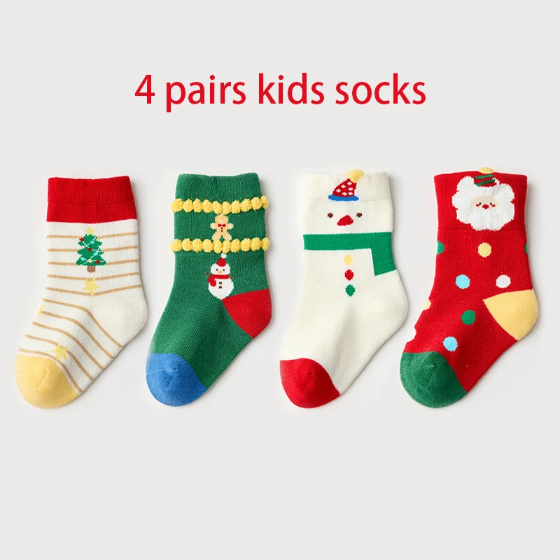 Beibi 4-Pair Pack Children's Socks, Boy's Winter Socks, Children's Christmas Socks, Toddler Socks, Suitable for Ages 0-6